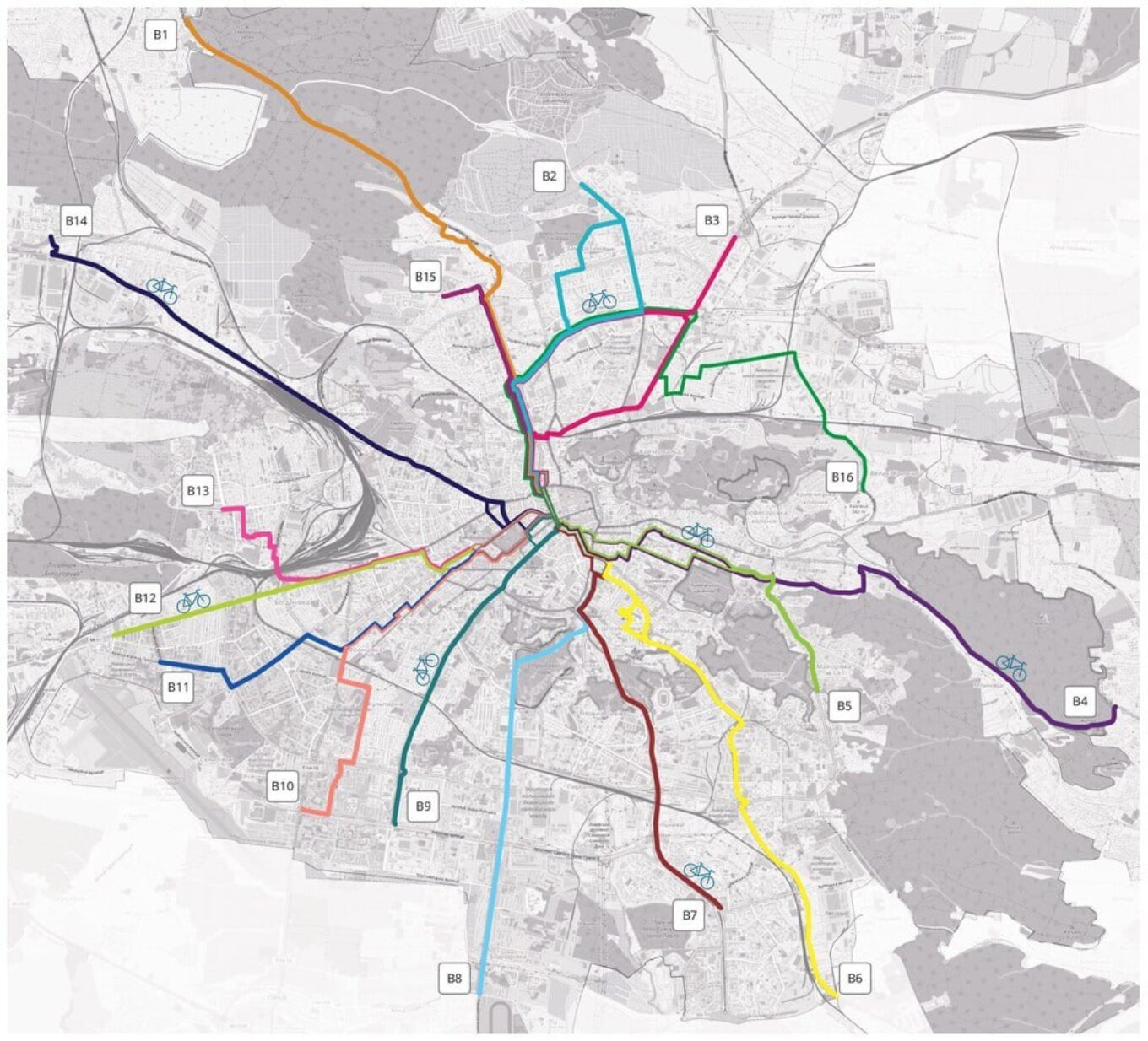 Паралельно фахівці працюють над створенням навігаційної системи, яка допоможе велосипедистам орієнтуватися вздовж маршрутів. У перспективі також розроблять схему міжрайонних сполучень, що з’єднає мікрорайони між собою.