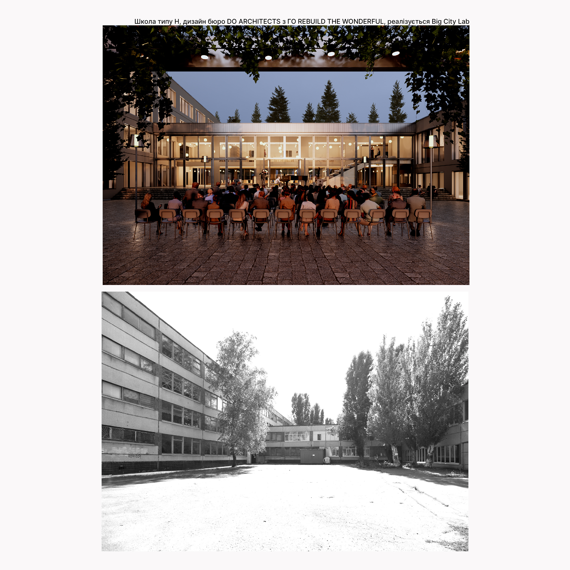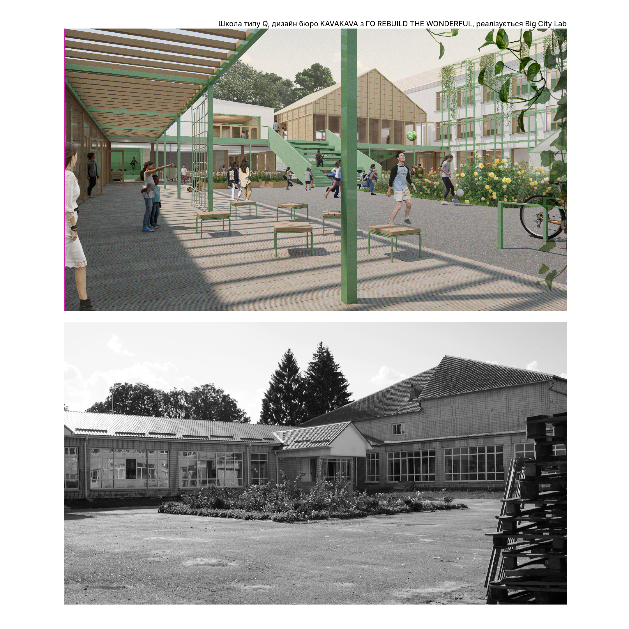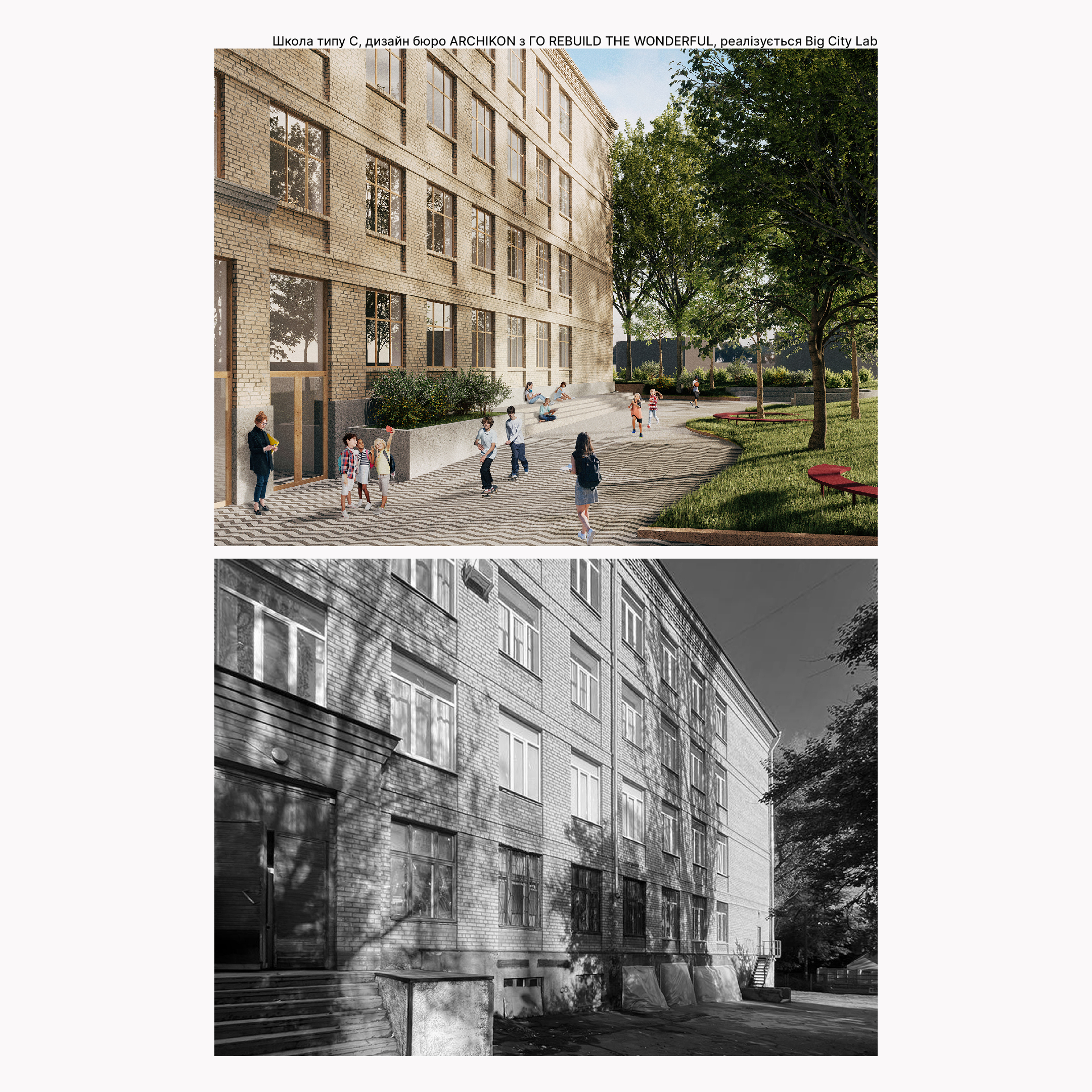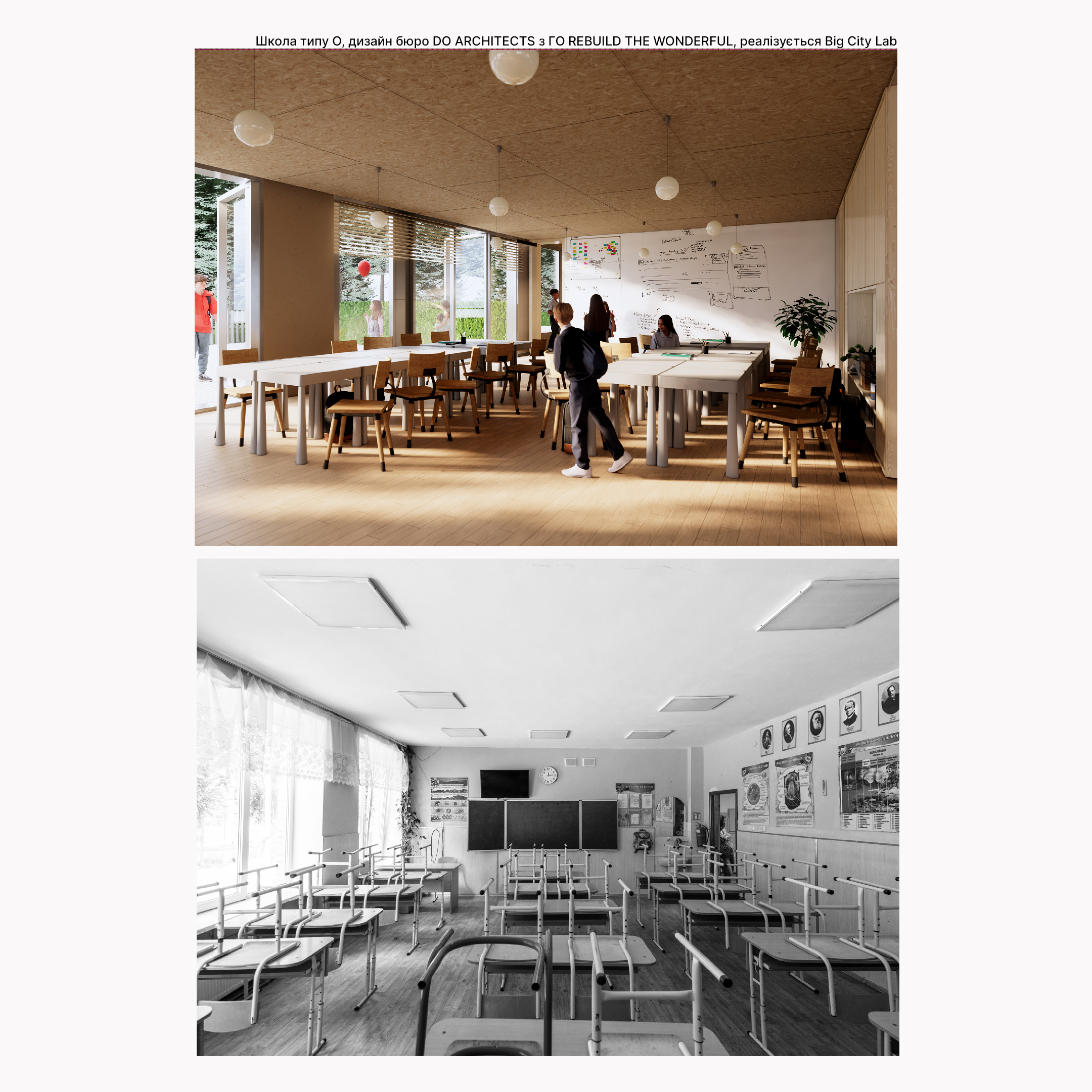 Більшість шкіл в Україні будувалась за типовими радянськими проєктами. Близько 35% усіх шкіл в деокупованих областях України – це 5 архітектурних типів будівель, що повторюються по всій Україні. Тож, щоб відновити сотні пошкоджених війною шкіл, достатньо 5 концепцій, у яких будуть закладені безбар’єрність, безпечні укриття, створення просторів для спілкування дітей, сучасний дизайн та енергоефективність. Це допоможе створити школи, у яких діти навчаться довіряти собі та світу, із задоволенням будуть пізнавати різні дисципліни в комфортних лабораторіях і майстерях, створювати спільні проєкти у комфортних місцях для гри та відпочинку, яких зараз так не вистачає нашим школам.