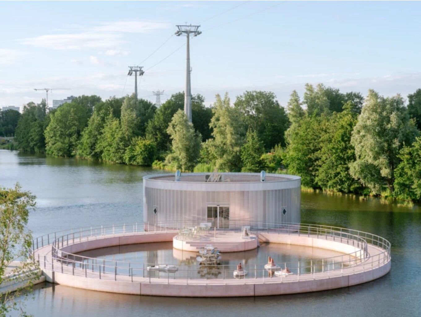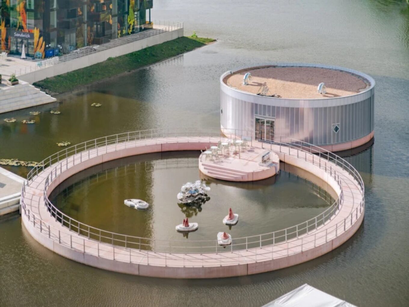 Дизайн павільйону задумали як послідовність трьох дотичних одне до одного кіл – порту, сцени й обсерваторії. Найбільше коло (порт), створене з рожевого терраццо, слугує виставковим простором для мистецьких робіт, а також відкритою зоною для відпочинку. Крім того, конструкцію дійсно використовують як порт – сюди можуть причалювати як баржі, так і відвідувачі на човнах.