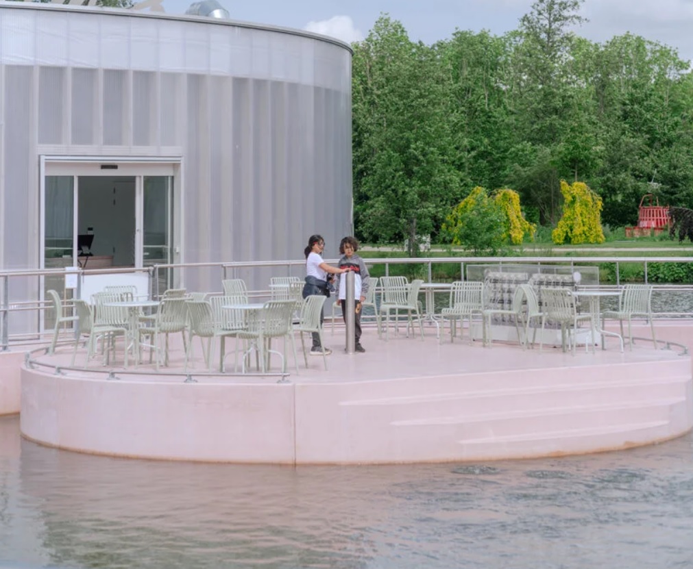 Дизайн павільйону задумали як послідовність трьох дотичних одне до одного кіл – порту, сцени й обсерваторії. Найбільше коло (порт), створене з рожевого терраццо, слугує виставковим простором для мистецьких робіт, а також відкритою зоною для відпочинку. Крім того, конструкцію дійсно використовують як порт – сюди можуть причалювати як баржі, так і відвідувачі на човнах.
