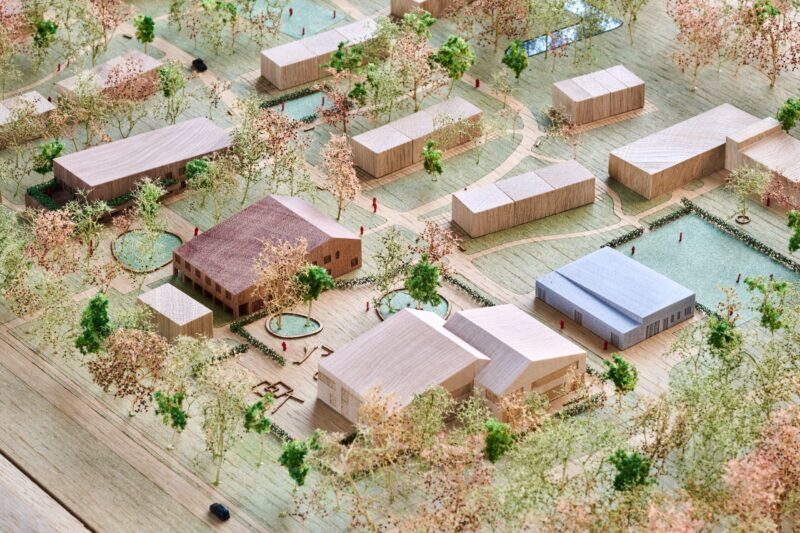 Будівлі вирізняються різними кольоровими палітрами для зручної навігації, великими скляними прорізами та дерев’яними фасадами, що створюють атмосферу безпеки й відкритості як для мешканців, так і для місцевої громади.