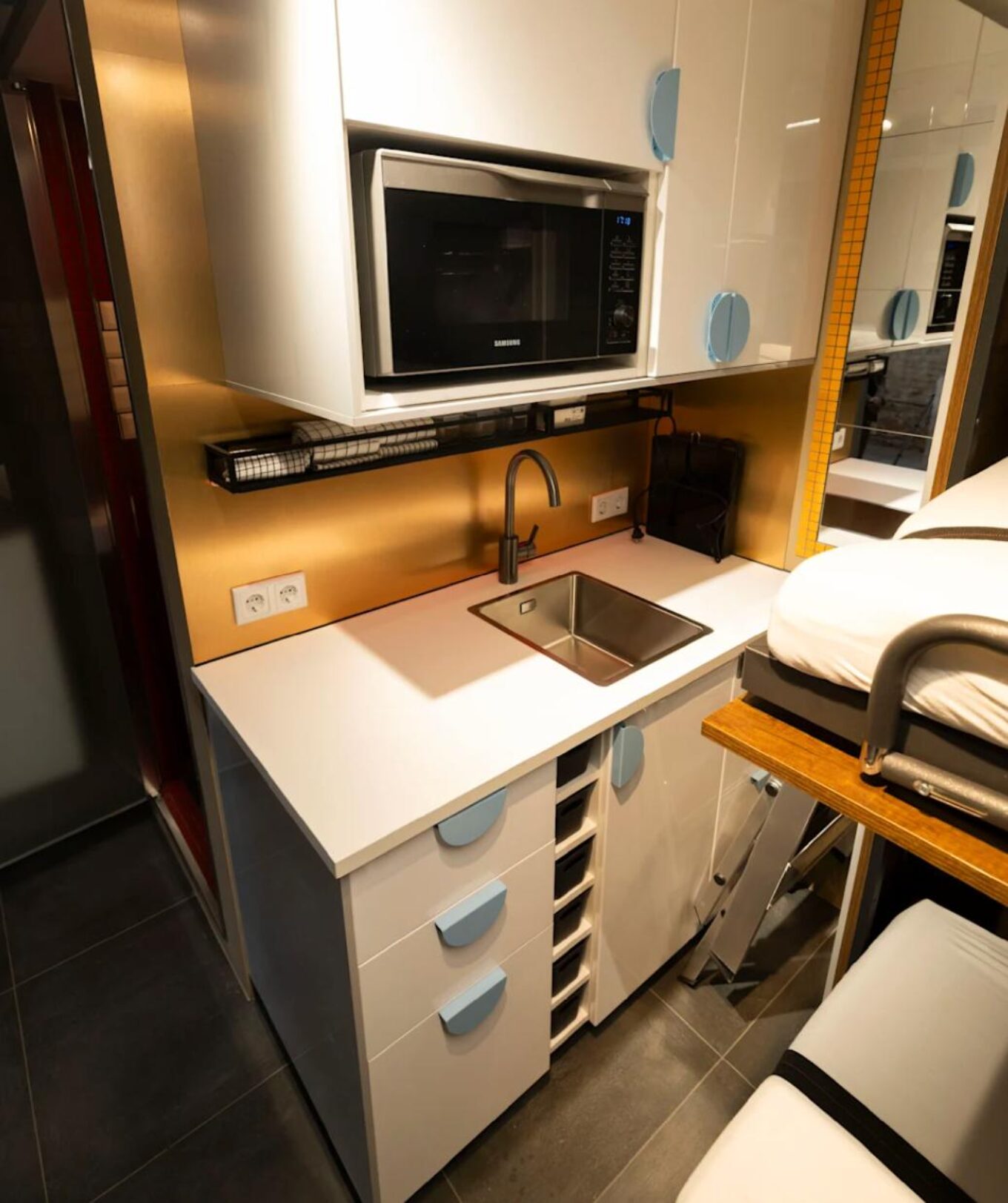 Перший прототип має площу 16 квадратних метрів і зроблений із залізобетону зі стінами товщиною 20 сантиметрів. Всередині є все необхідне для життя протягом тижня: чотири розкладні ліжка, туалет, душ, мінікухня та екран, що імітує вид із вікна. Освітлення можна змінювати за кольором і яскравістю.