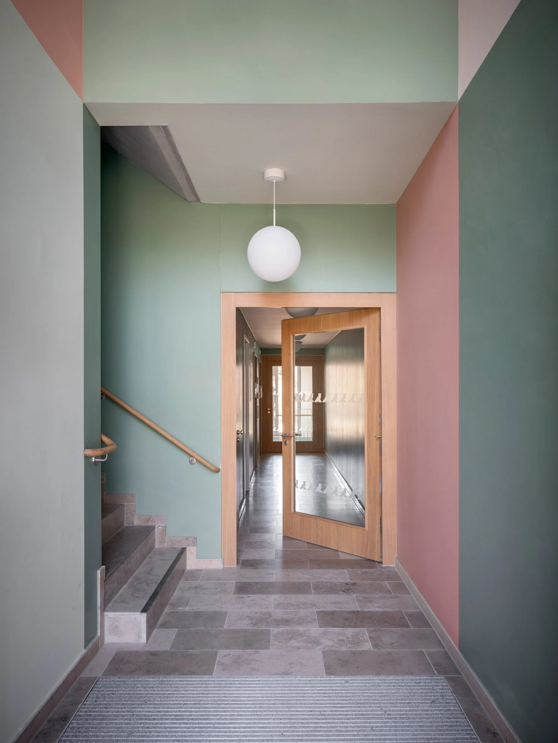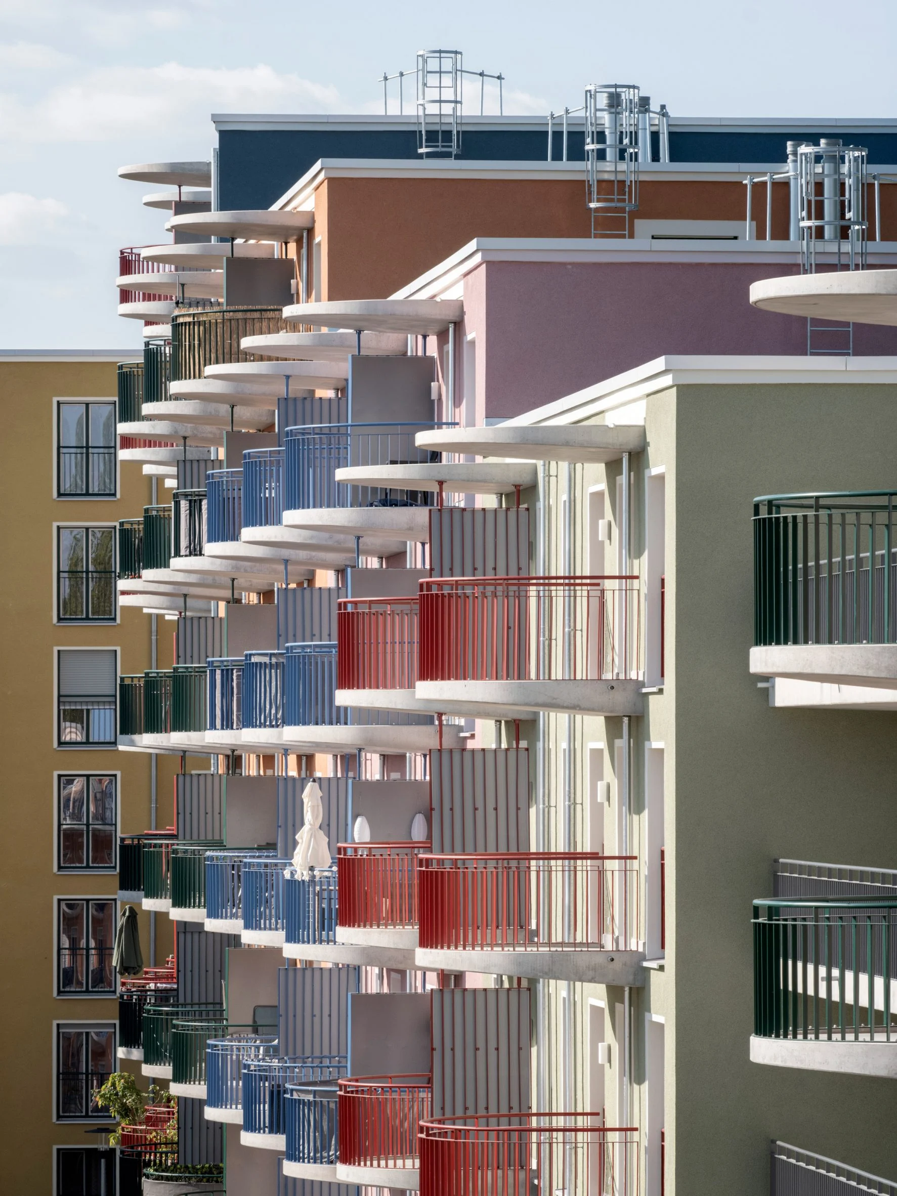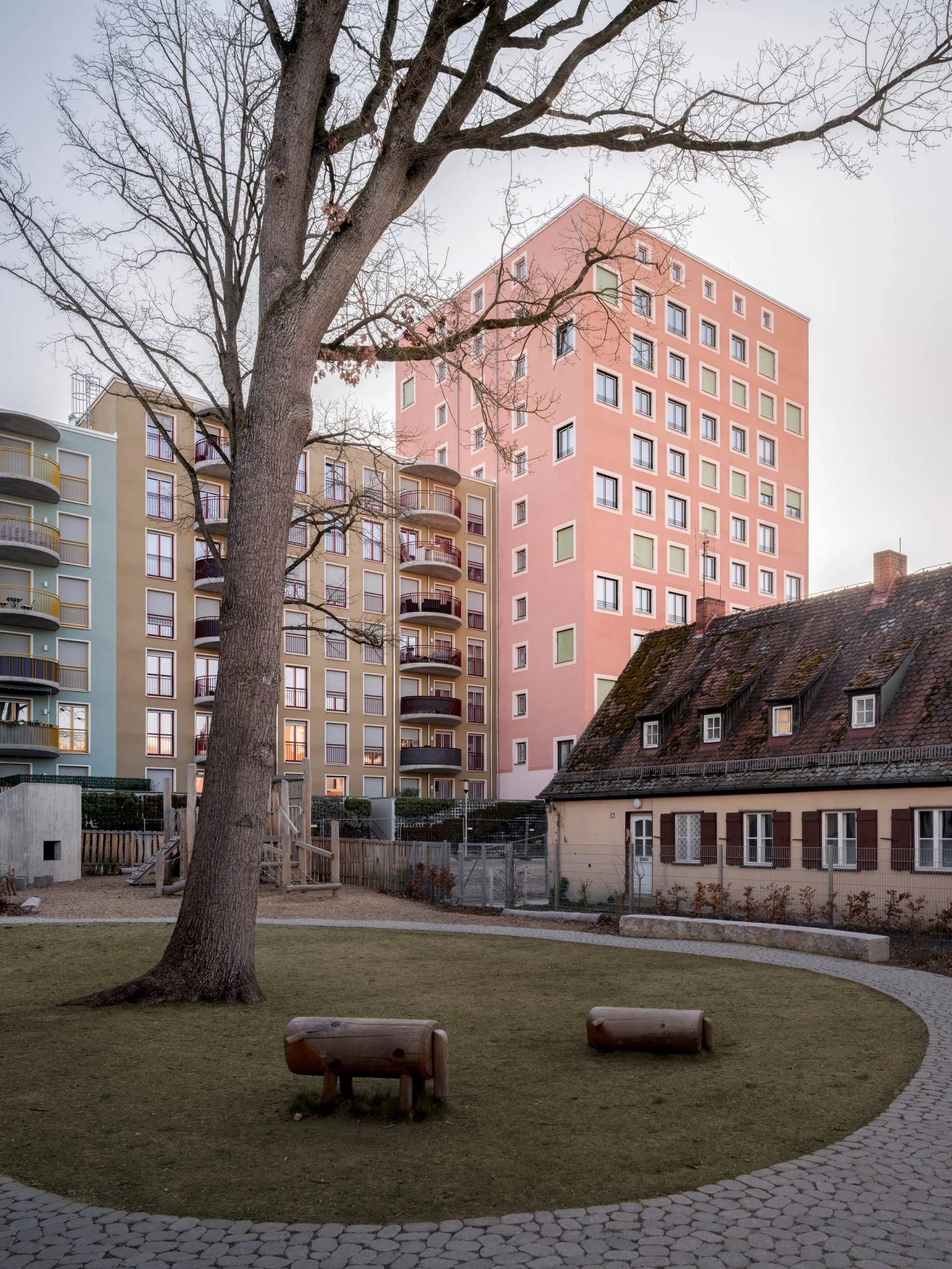Кожен будинок має різну висотність, фасади оздоблені кольоровою мінеральною штукатуркою. Фото: Marcus Bredt