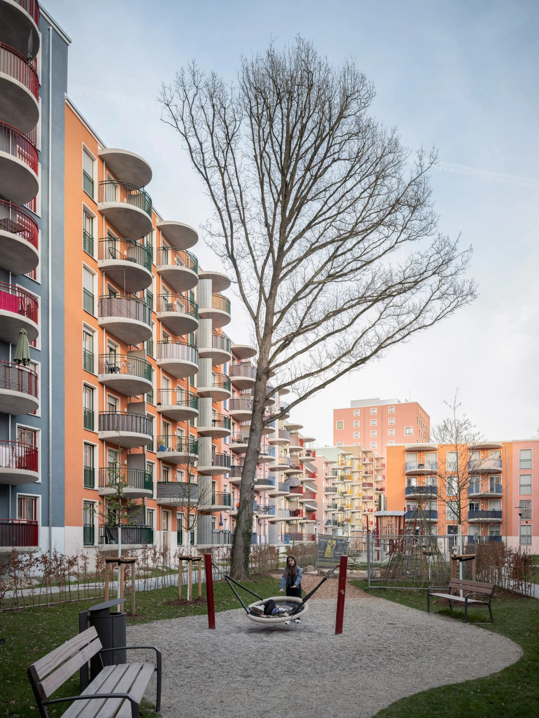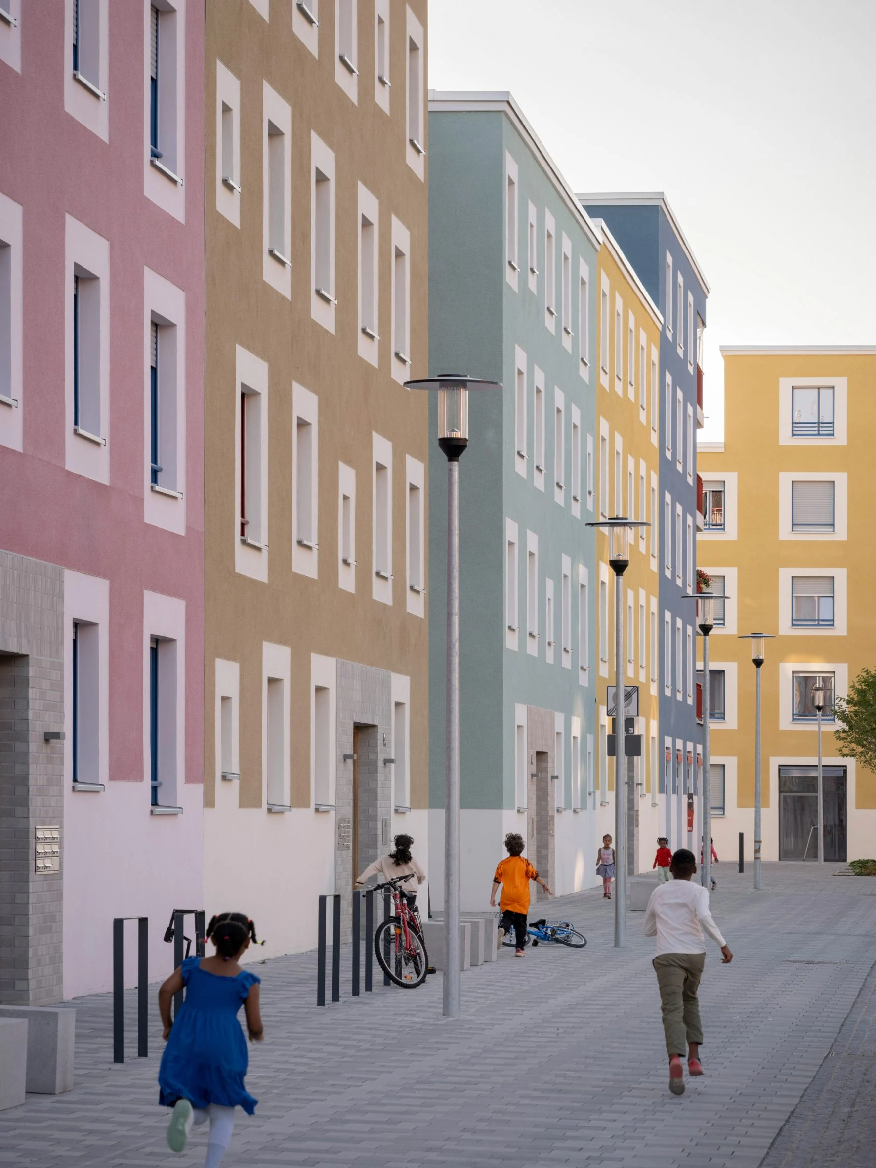 Розроблений на площі 62 000 м², новий квартал налічує 381 квартиру, офіси, комерційні приміщення та сімейний центр. Архітектори поділили територію на чотири блоки, розділені вузькими провулками, з центральною площею, де й розмістили громадський простір для сімей, пише Dezeen.