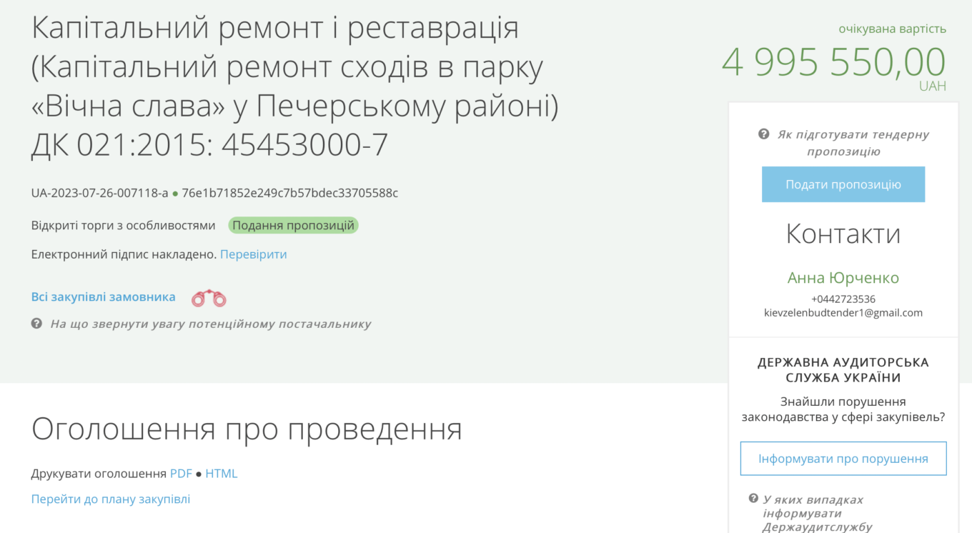 Відповідний тендер з’явився на Prozorro.