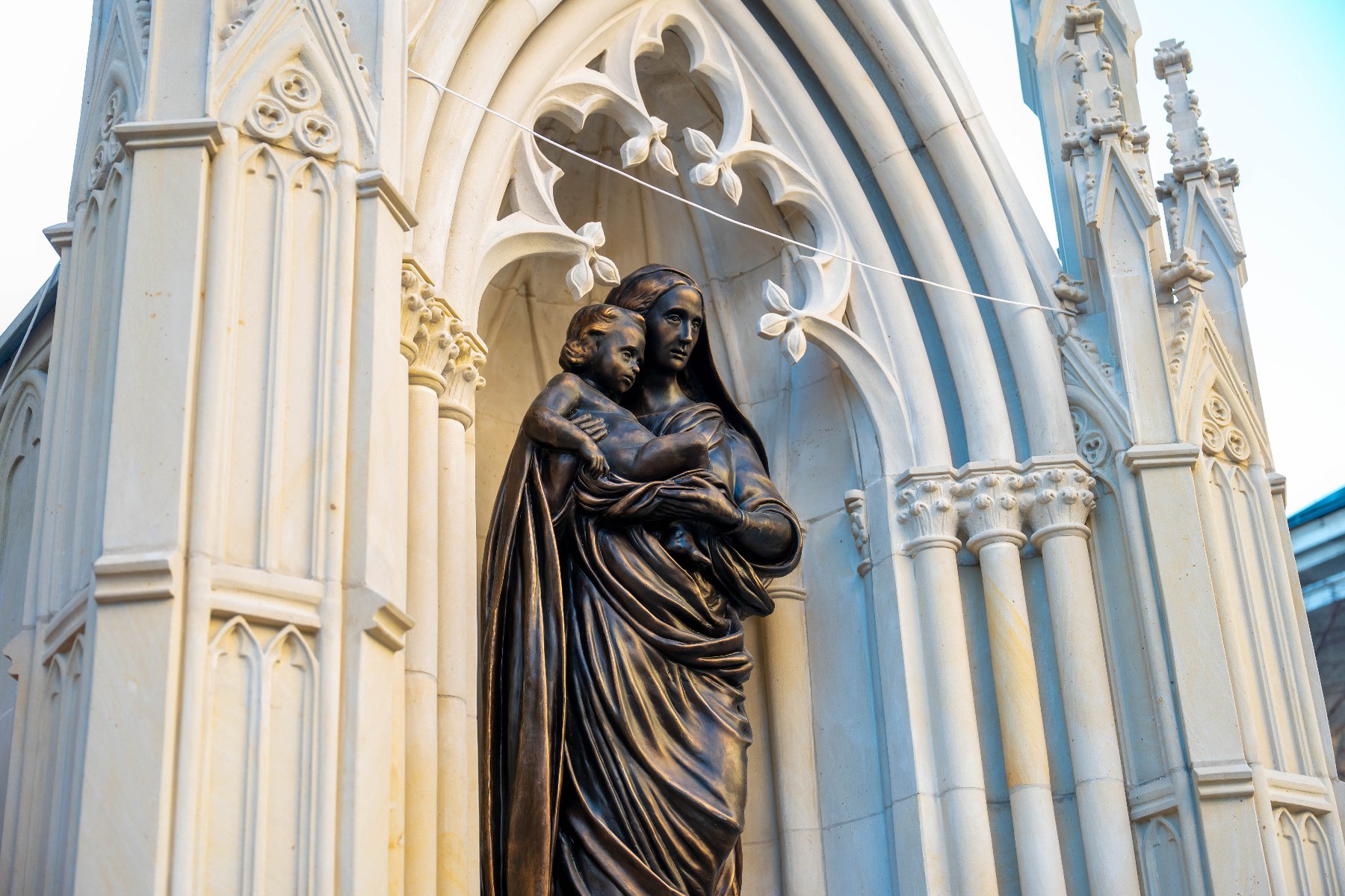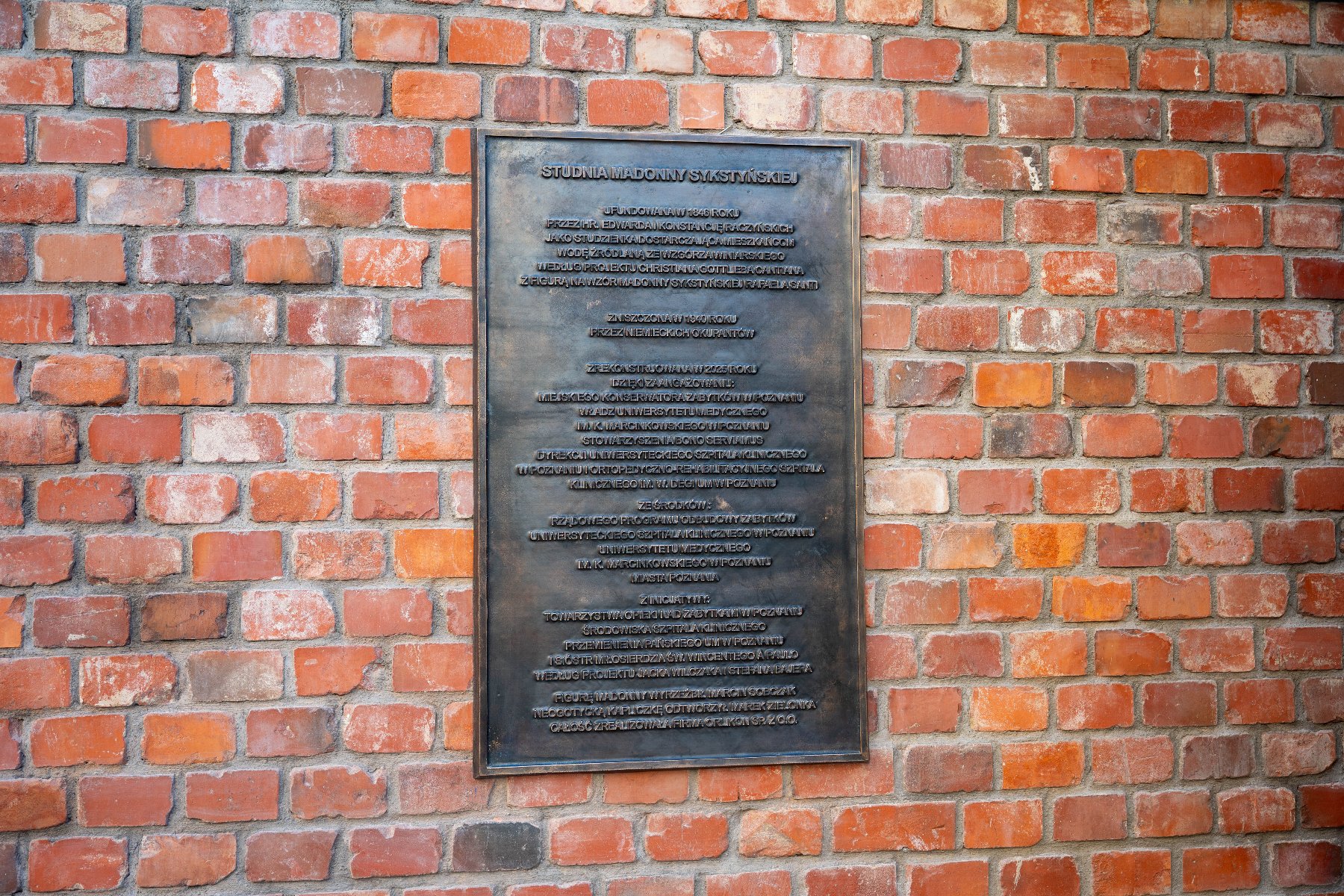 Фігуру Мадонни створив скульптор Марцін Собчак, а кам’яну неоготичну капличку відтворив Марек Зелонька. Варто зазначити, що нова криниця розташована не точно на місці оригіналу: її довелося зсунути трохи на схід через конфлікт із в’їздом на територію лікарні.