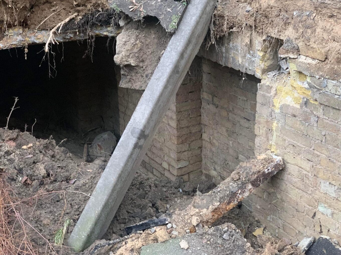 “Після того, як автівки прибрали, а завал трохи розчистили — зʼявилась можливість його оглянути краще. Під шаром землі в 50-60 см виявилися зводи перекриття, мурована стіна виконана з київської жовтої цегли та ніша, що завершується лучкованою перемичкою”, — пише Перов.