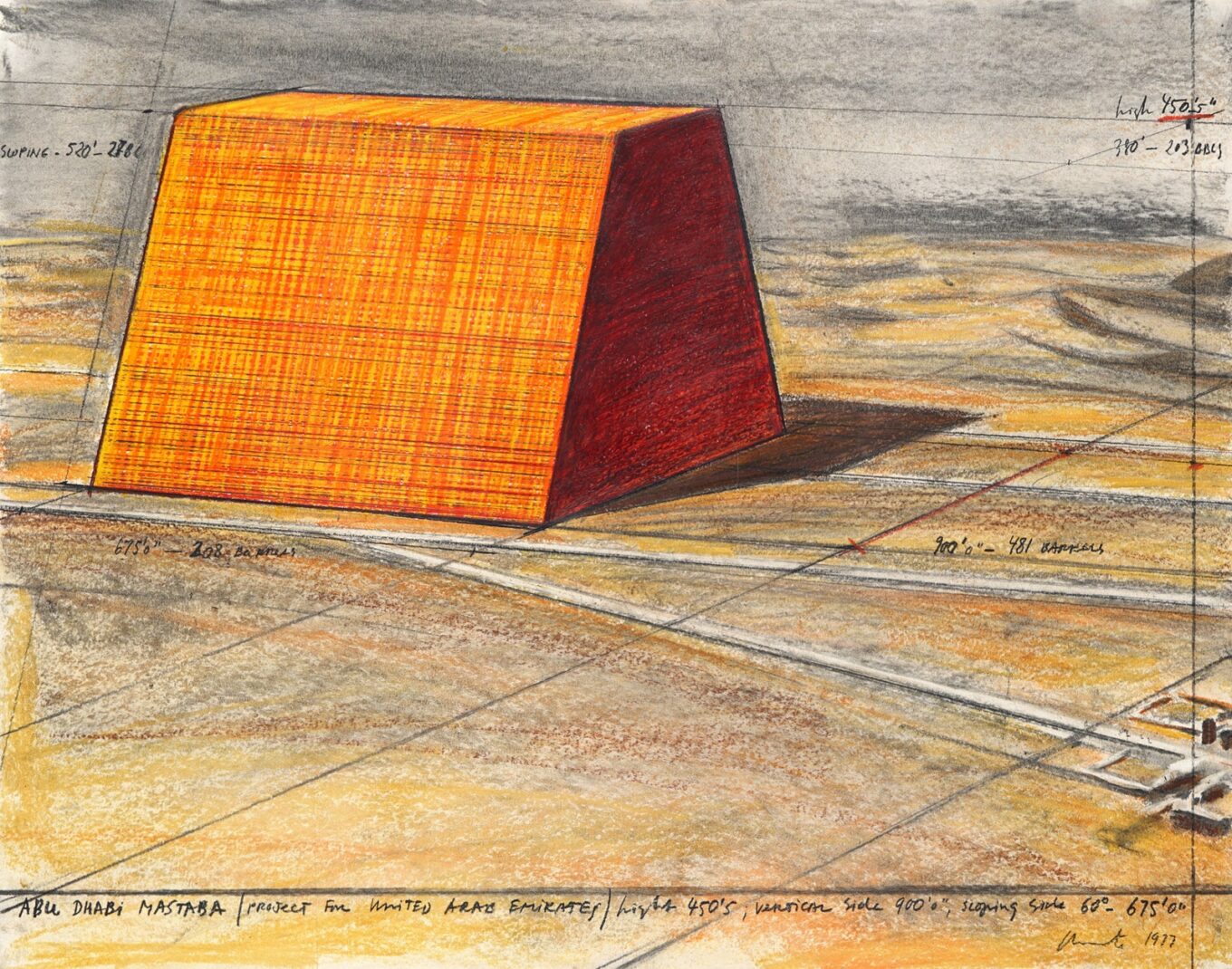 Проєкт Mastaba, перемальваний Христо у 2013 році. Фото: André Grossmann © 2013 Фонд Христо и Жанны-Клод
