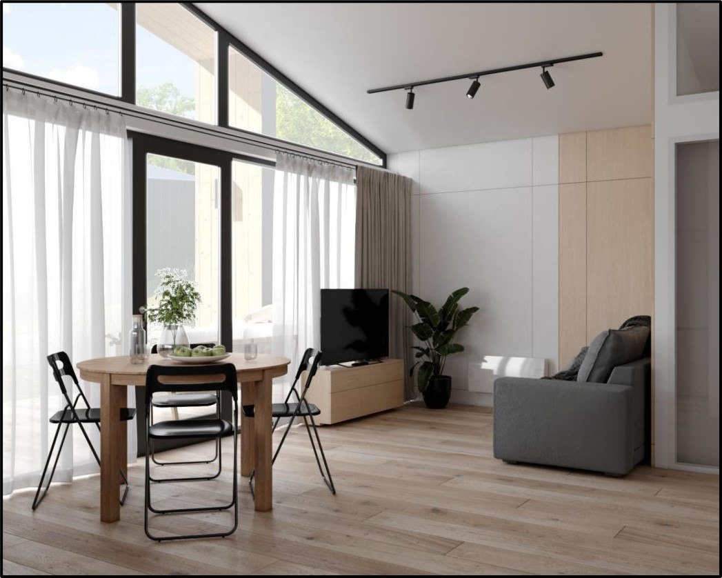 У проєктуванні та облаштуванні будинків будуть враховані всі потреби людей з інвалідністю. Зокрема: дверні прорізи, пандуси, сходинки, поручні, туалети та інші елементи приміщення забезпечать легку маневреність для людей на кріслах колісних; системи безпеки (пожежна та газова сигналізації, сигнали евакуації) матимуть візуальні сигнали або вібраційні оповіщення, доступні для сприйняття людьми з порушеннями слуху; санітарне приміщення обладнають аварійною сигналізацією та системою оповіщення з врахуванням потреб осіб з порушеннями зору та слуху.