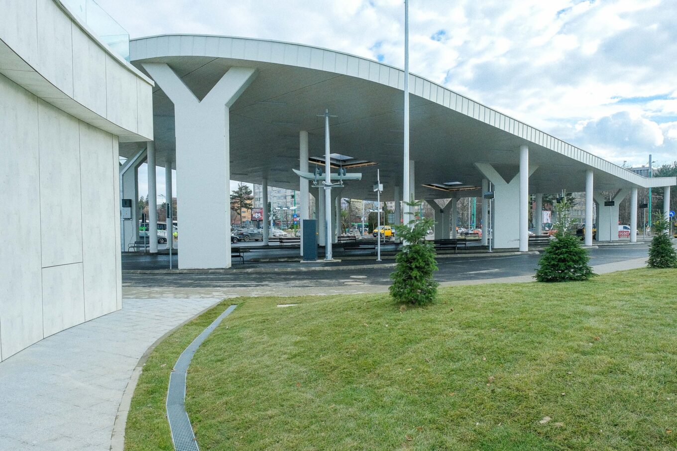 Автобусний термінал має 12 платформ, 4 з яких обладнані станціями швидкої зарядки електробусів.