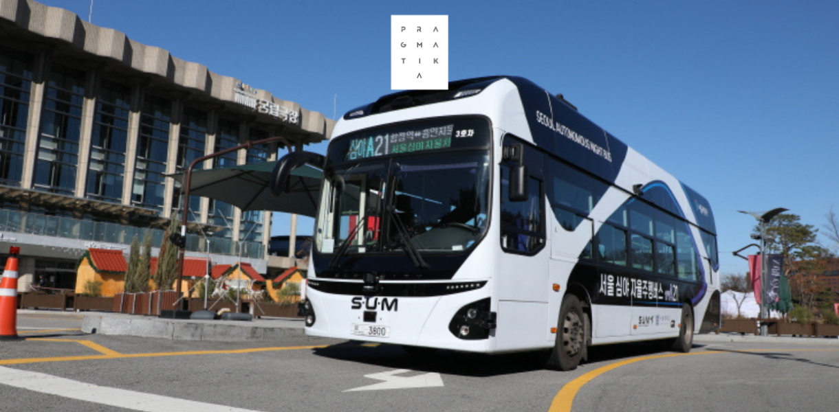 У південнокорейському Сеулі запустять безпілотний автобус, який курсуватиме містом до світанку. Такі нововведення повʼязані із заторами в місті та небажанням водіїв заступати на зміну рано-вранці.