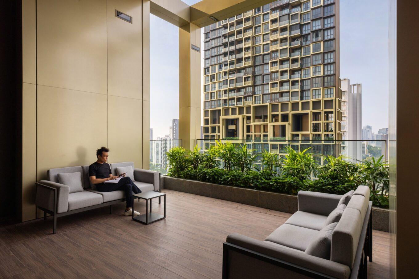 Піксельний орнамент також акцентує спільні зелені простори, характерні для Сінгапуру. На небесних садах 24-го поверху та на терасі даху жорстка решітка одиночних модулів розширюється до подвійних і потрійних рам, утворюючи ефектні відкриті зони з деревами та рослинністю.