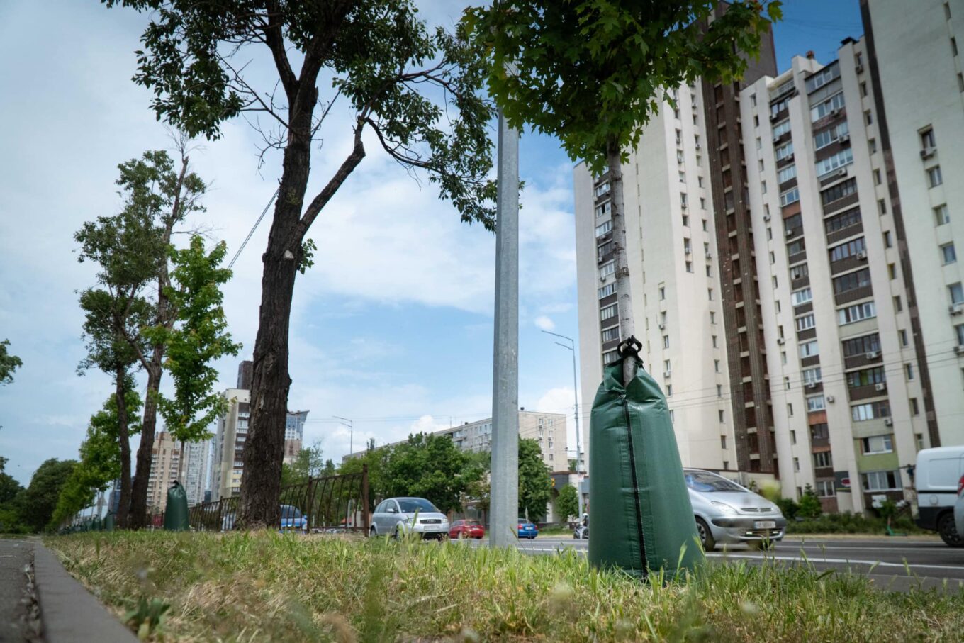 За його словами, це рішення заощаджує до 65% води порівняно зі звичайним поливом. Завдяки спеціальному матеріалу, вода в торбинках не перегрівається та забезпечує деревам оптимальну температуру поливу.