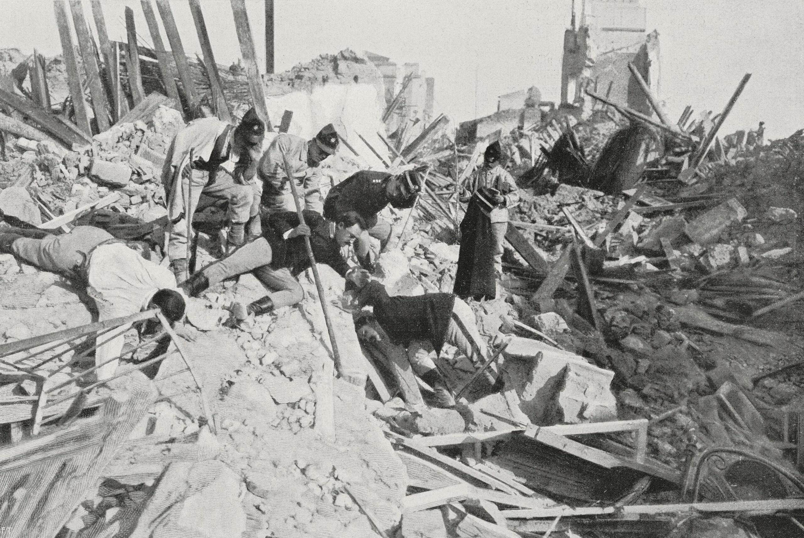 Пошуки людей, похованих під уламками після землетрусу. Фото: DEA / Biblioteca Ambrosiana / De Agostini / Getty Images