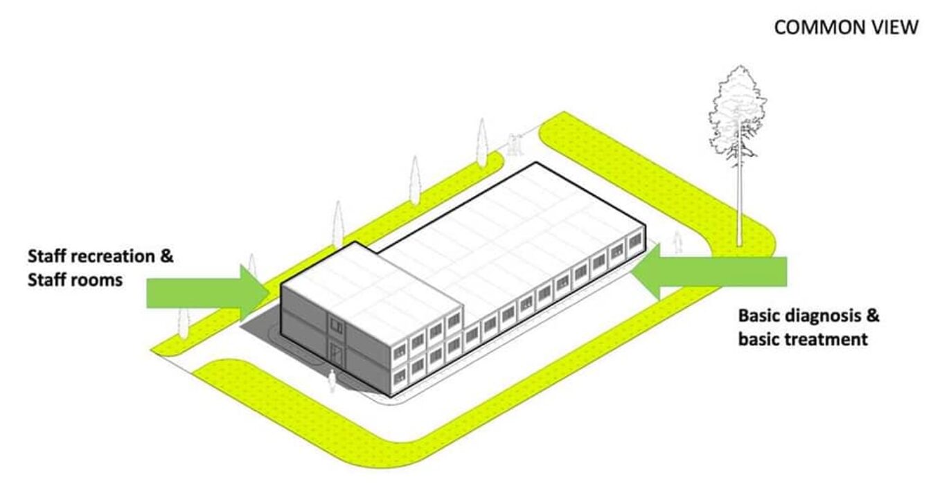 Споруду площею близько 800 м² виготовлять у Німеччині. У ній функціонуватимуть кабінети офтальмолога, отоларинголога, гінеколога та хірурга. Кожне з приміщень буде оснащене всім необхідним обладнанням.