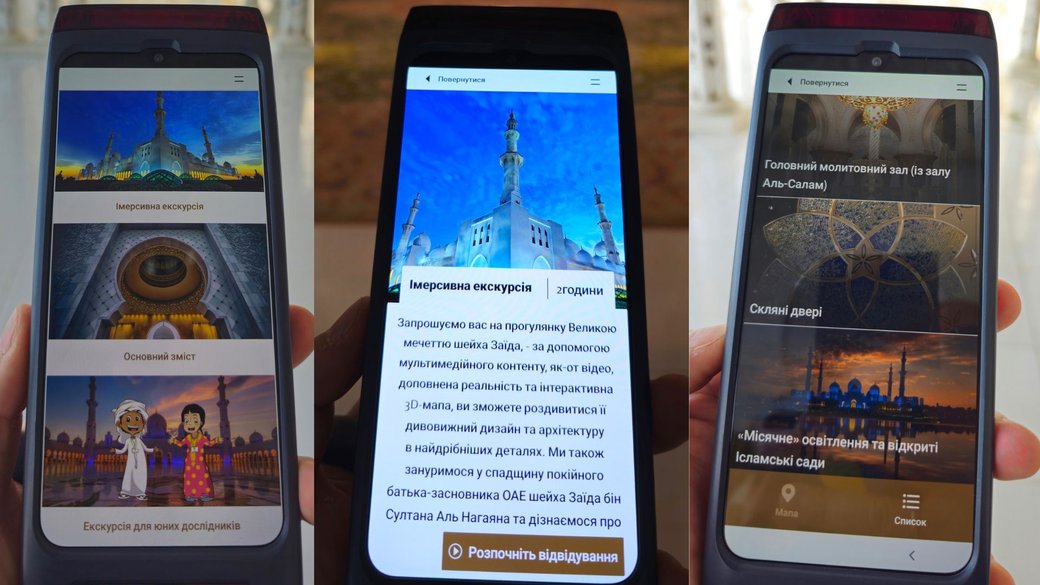 Вхід до мечеті доступний для всіх охочих, як можуть послухати екскурсію з використанням технологій доповненої реальності через мультимедійні пристрої-гіди 14 мовами.