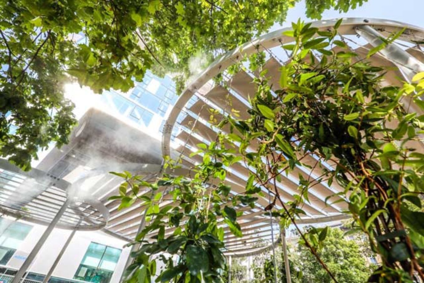 Для того, аби встановити систему так званого “водяного туману”, довелось повністю демонтувати тротуар і прокласти нову каналізацію. Поряд з фонтанами змонтували зони для відпочинку у вигляді лав із конструкціями для затінення. Таким чином температурний показник знизився на 6 градусів, порівняно з іншими частинами міста.