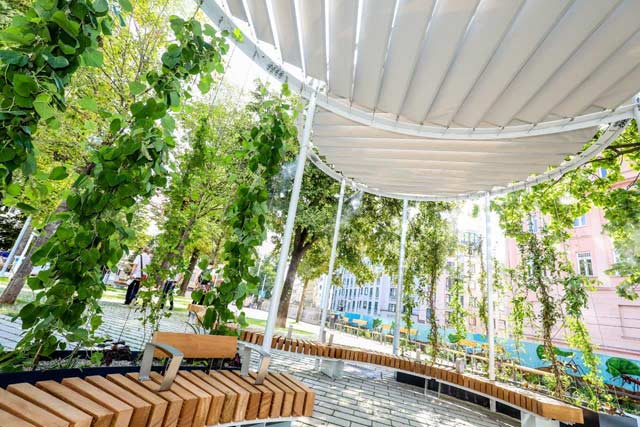 Такий вигляд мають оновлені зони для відпочинку. Їх розробляли з урахуванням показників ефективності щодо зменшення впливів спеки. Фото: PID / Futhner