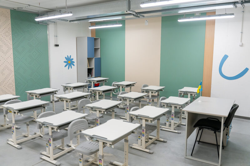 Школа розташована на глибині 7 метрів від поверхні землі. Там облаштовано 16 кабінетів із сучасним обладнанням та меблями. Зокрема, в класах встановлені інтерактивні дошки та ростові парти, які можна підлаштувати під зріст дитини.