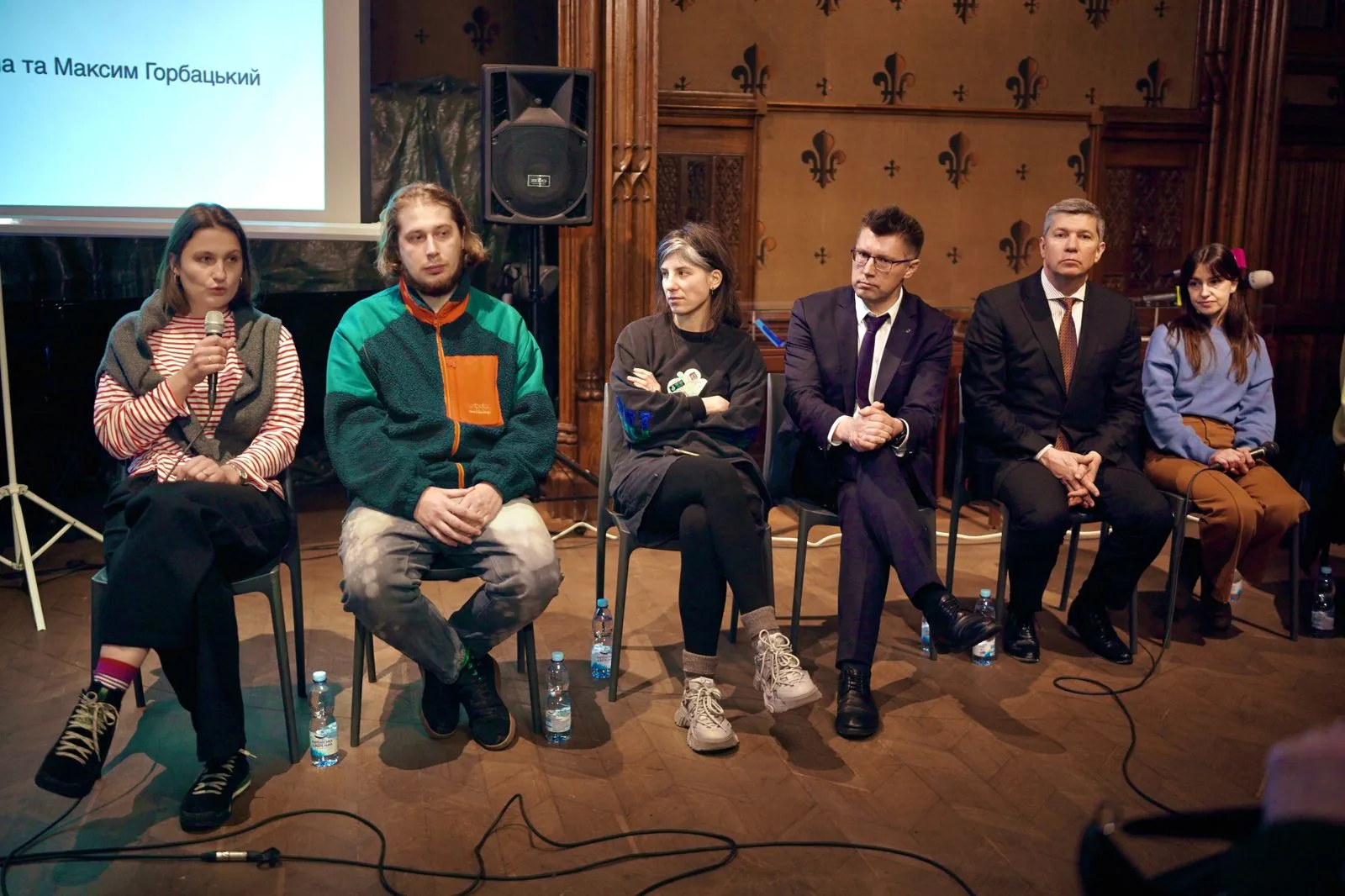 Презентація українського павільйону в Музеї Ханенків. Вікторія Бавикіна, Даніїл Ревковський, Катя Бучацька, Тарас Шевченко, Ростислав Карандєєв.