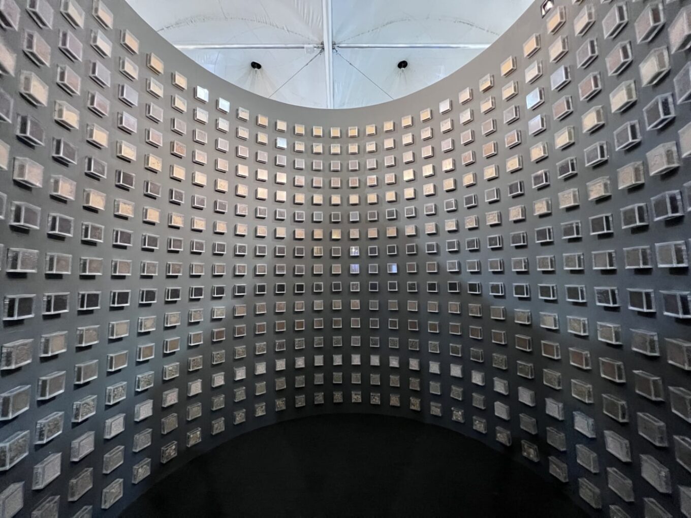 Усередині центрального блоку павільйону України розташована інсталяція у вигляді вирви від снаряда, в якій понад п’ятсот кубів з переробленого матеріалу Polygood від The Good Plastic Company з шістнадцятьма видами ґрунтів