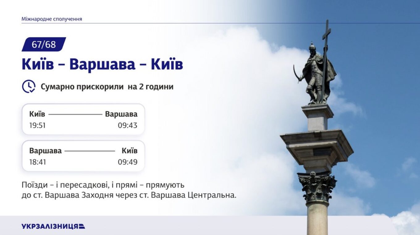 Прямий рейс №67/68 Київ — Варшава, що сполучає дві сусідні столиці, отримав у новому графіку 2025-2026 прискорення на більш ніж 2 години.