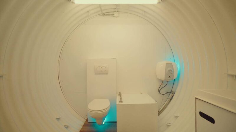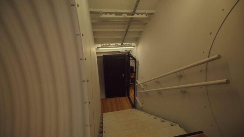 Конструкція включає кілька тамбурів, два приміщення для перебування людей і санвузол. Передбачено систему автономного енергоживлення на базі залізофосфатних акумуляторів та генератора. Всередині є місця для сидіння, вентиляція та матеріали герметизації. Укриття забезпечує захист від уламків, ударної хвилі, хімічного ураження та радіоактивного пилу.