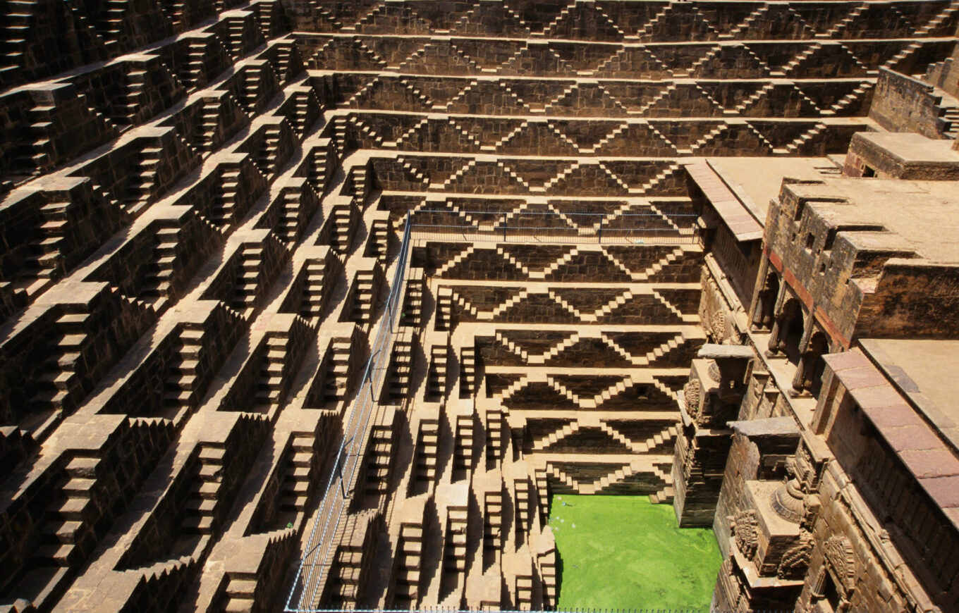 Індія відома своїми ступінчастими колодязями — багаторівневими спорудами зі сходами, що ведуть до підземних вод. Більшість із них збудували між XI та XVIII століттями поблизу природних водоносних горизонтів.