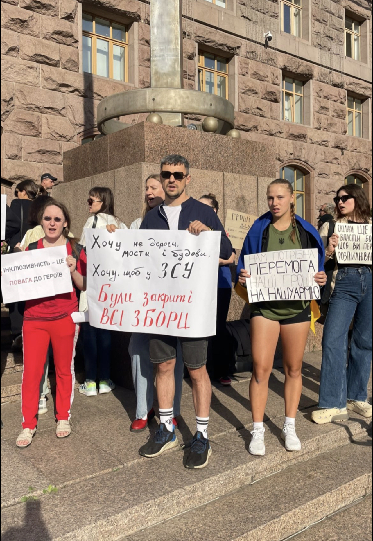 Минулого разу кияни зібрались 16 вересня. Тоді активісти вимагали від столичної влади закликали закласти в бюджет-2024 більше коштів на потреби військових, зокрема на БПЛА.