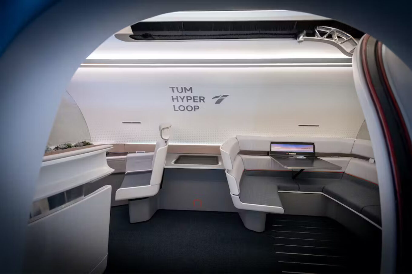 Наступним елементом для тестування є сама капсула, у якій використовується технологія магнітної левітації. Її обтічні форми дають схожість з мініатюрним поїздом. Поки що капсула вміщує п’ять осіб, має обертові крісла, столики та декоративні елементи у вигляді рослин (сукулентів).