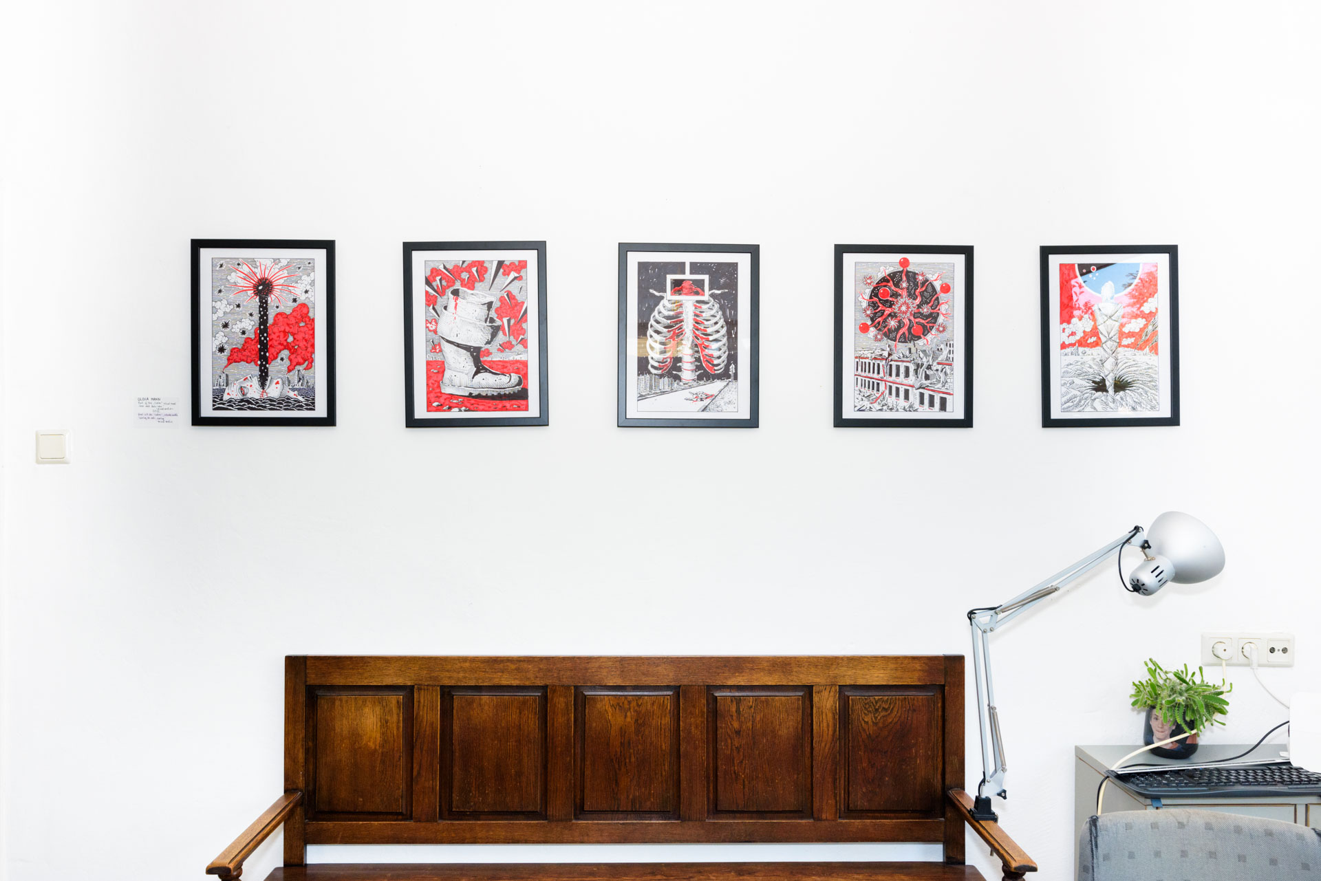 В рамках виставки триває збір коштів для підрозділу однієї з учасниць резиденції, молодої художниці, яка замість того, щоб малювати, добровільно стала до лав ЗСУ від самого початку вторгнення.