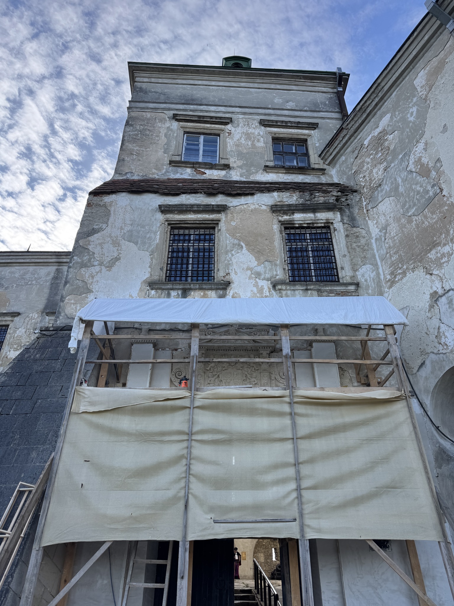 Заплановані роботи передбачають консервацію кам’яного обрамлення вікон, тиньку та даху верхнього ярусу фронтальної частини вежі, а також кам’яної контрфорсної частини в’їзної брами. Минулого року фахівці завершили реставрацію маньєристичного картуша над головним входом до замку.