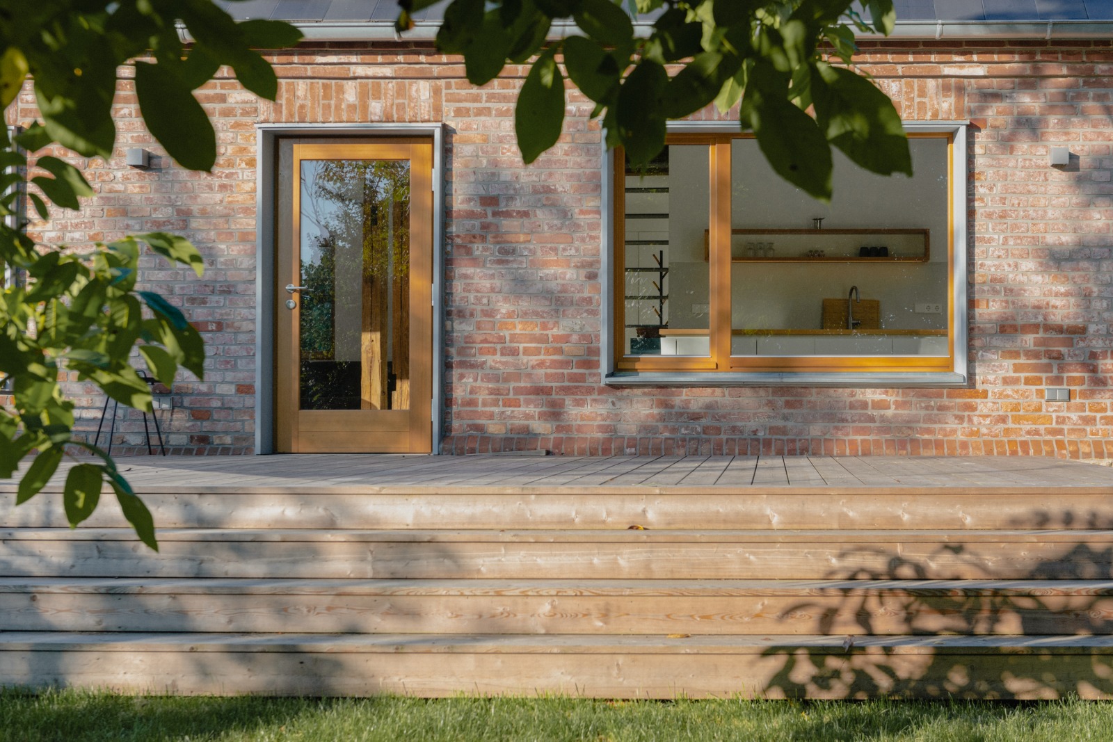 Фасад відтворили максимально близько до початкового вигляду, і тепер будинок знову гармонійно вписується у сільський ландшафт. Єдиним сучасним акцентом стали великі вікна та жалюзі, що додають легкості та світла.