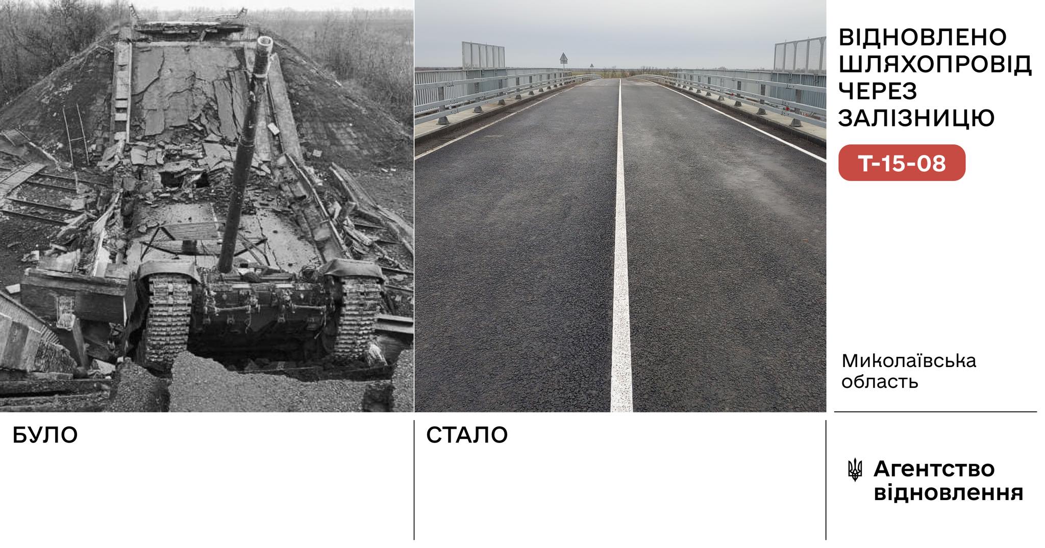 Крім того, завершили капітальний ремонт шляхопроводу через залізницю на автомобільній дорозі у Миколаївській області Т-15-08 Калинівка – Снігурівка, який був пошкоджений під час бойових дій.