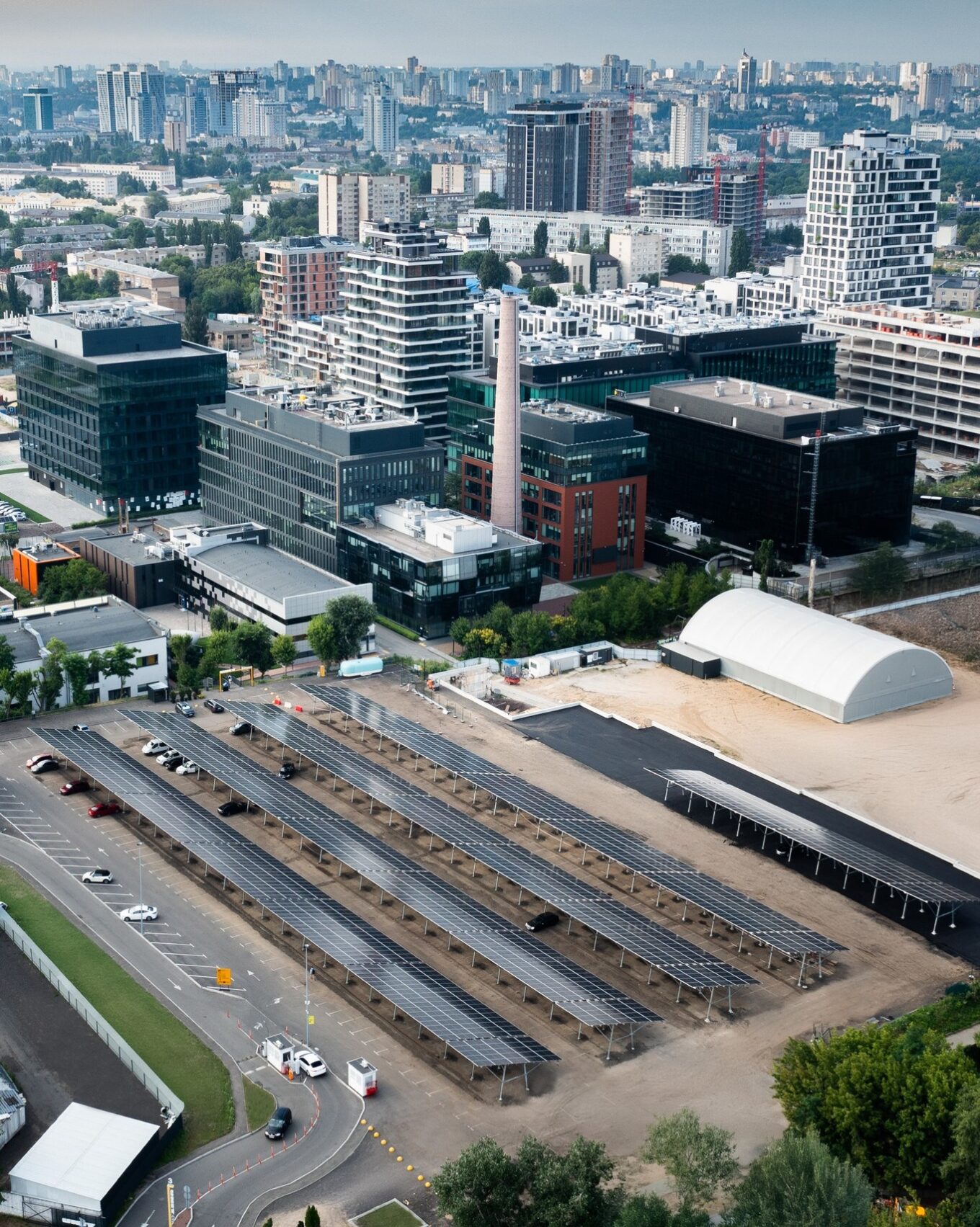 Сонячна електростанція над паркінгом покриє 414 паркомісць і забезпечить частину енергетичних потреб бізнес-кампусу. Працюватиме конструкція автономно — без підключення до загальної мережі.