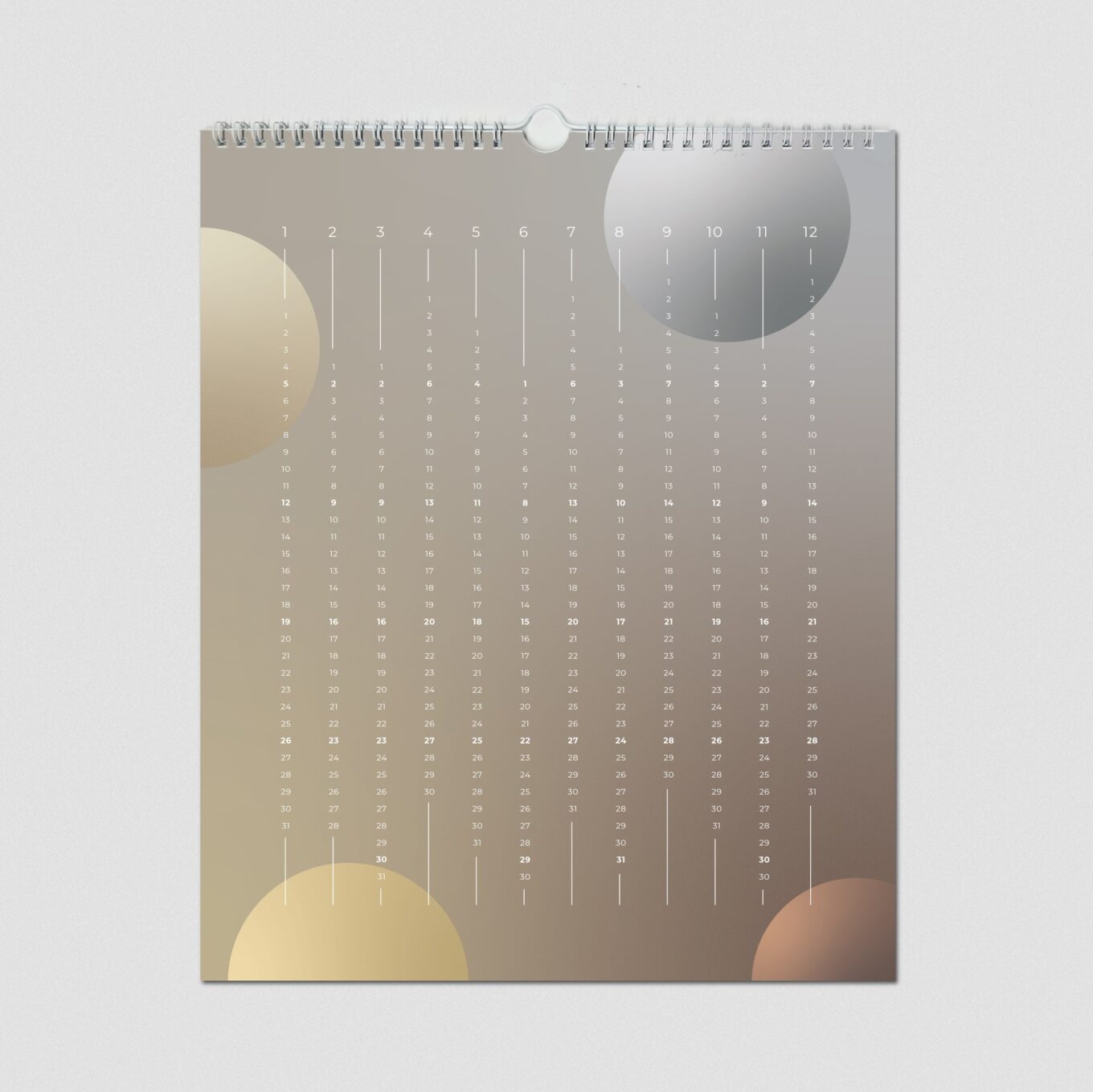 На обкладинці календаря та в символічних формах передані ідеї баугаузу, які втілені в архітектурі кварталу. Крім того, відтворені колористичні рішення архітектури Малого Ґалаґова.