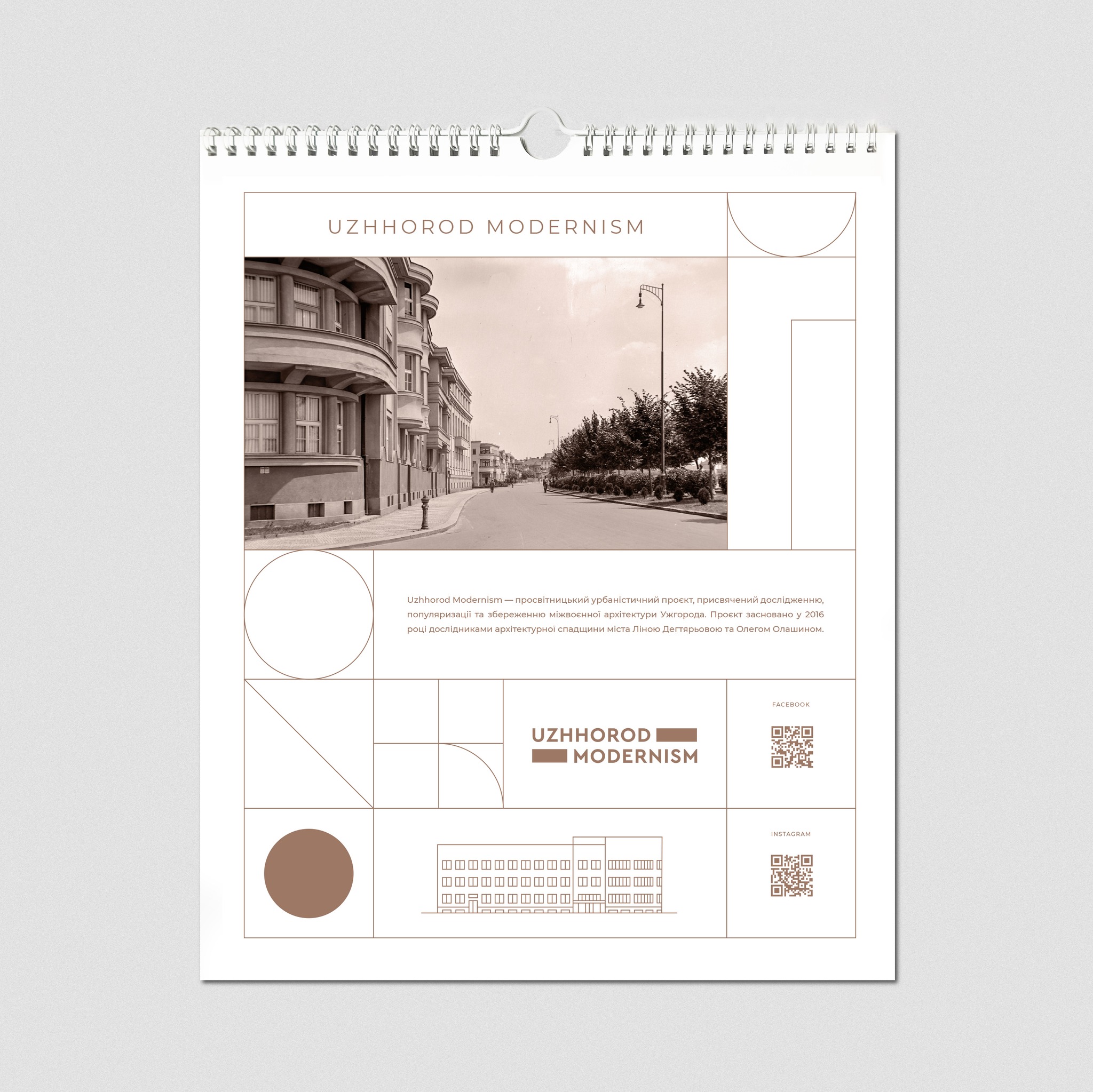 Зазначимо, календар на 2025 рік – п’ятий за рахунком, до нього були архітектурні календарі на 2018, 2019, 2020 та 2021 роки. Кожен календар мав якусь певну концепцію та тему. Наприклад, перший календар був присвячений порталам, інші — скульптурам і рельєфам модерністських будівель Ужгорода.