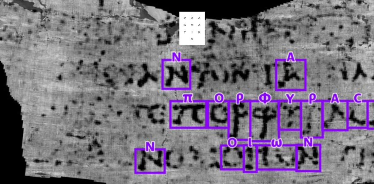 Дослідники Університету Кентуккі розшифровують текст із стародавнього сувою, який обгорів під час виверження Везувію 2000 років тому. Штучний інтелект допоміг розшифрувати перше слово πορφύραc – “фіолетовий”.