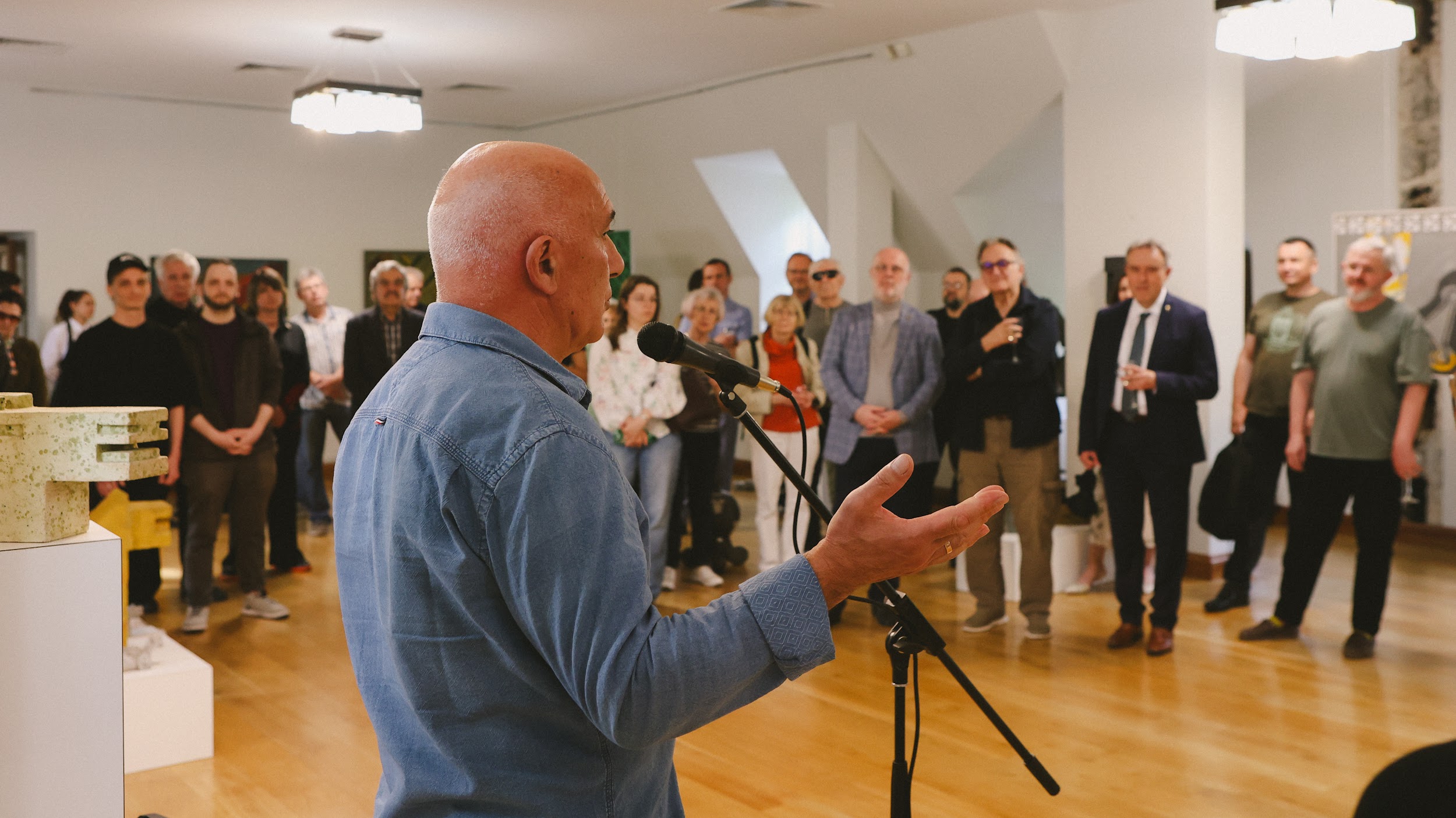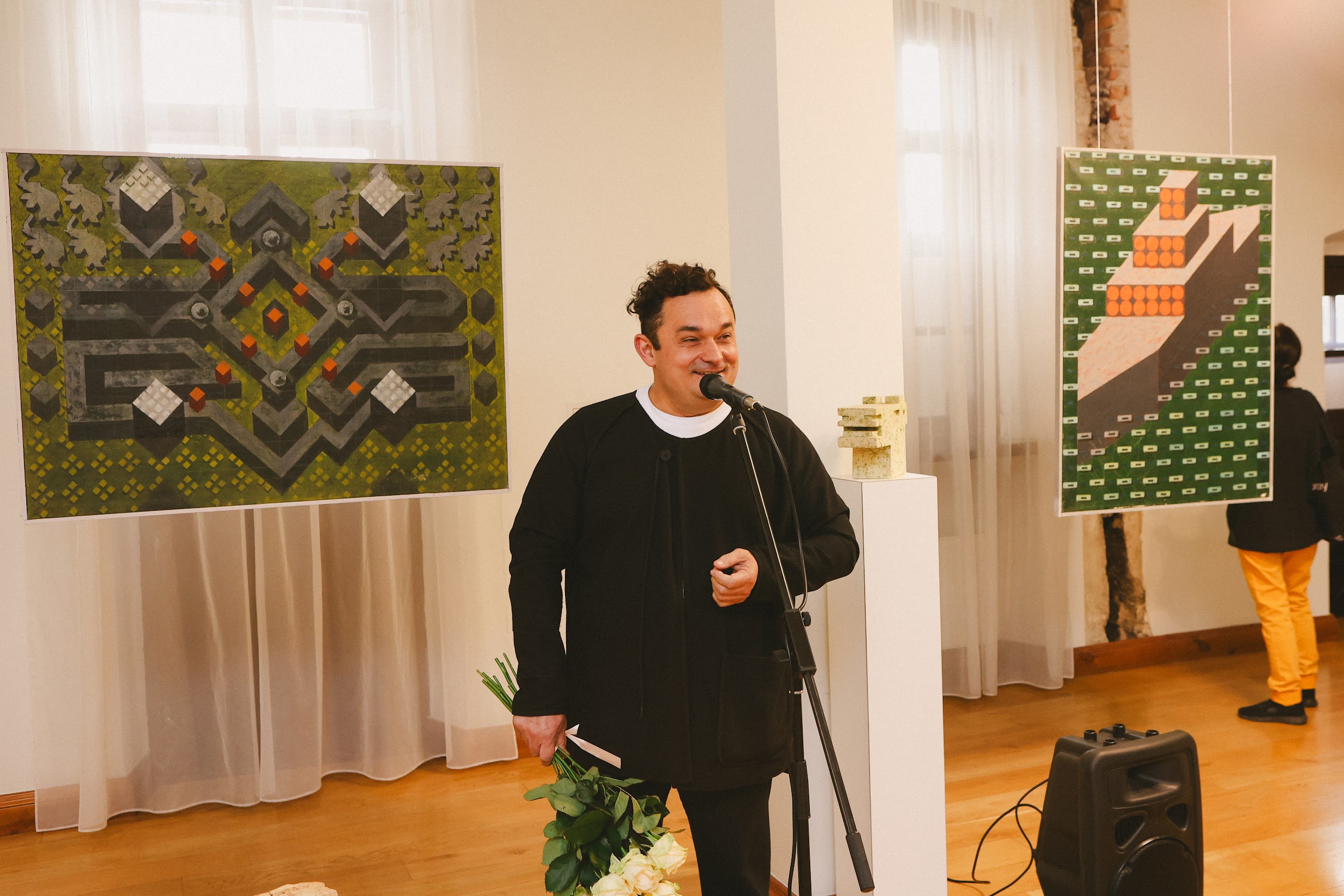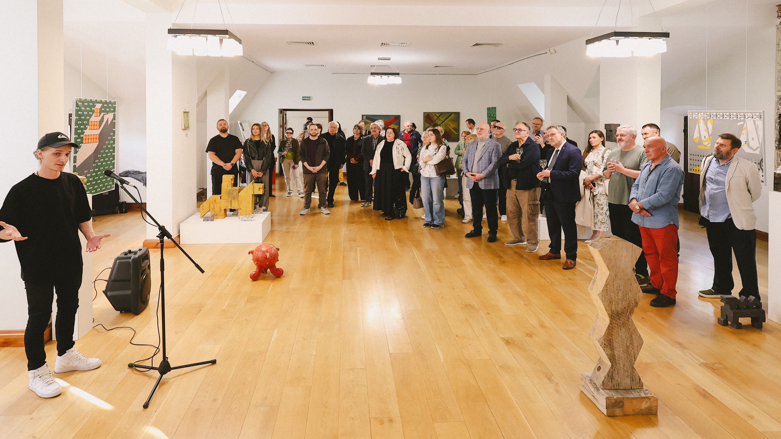«Це людина з поглядом 17-річного юнака, з планами фундаменталіста. Він абсолютно адекватно поставився до сучасних будівельних матеріалів і до того, як їх можна імплементувати в скульптуру. Неподалік ви можете подивитися на масштабування фігури, яка і стала символом сьогоднішньої виставки», — сказав CEO BUDZIRKA Святослав Шилін під час відкриття події.