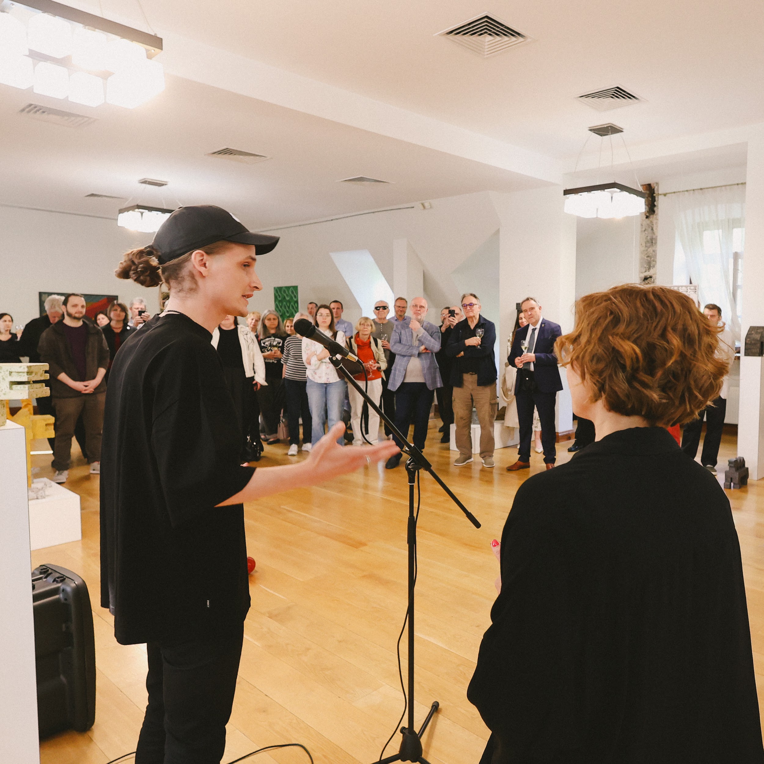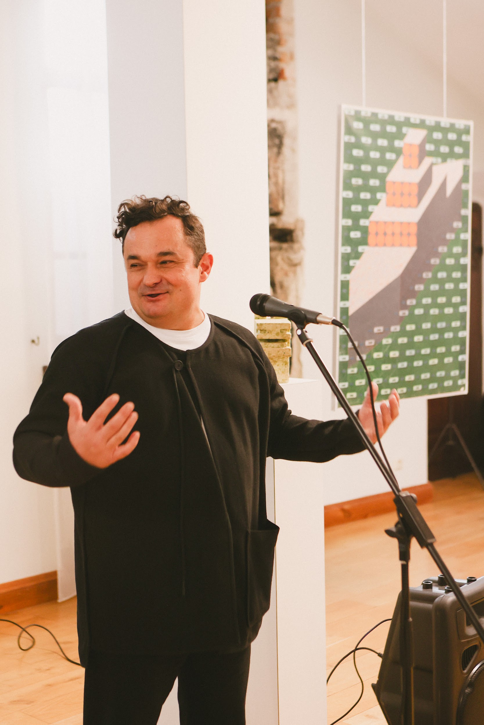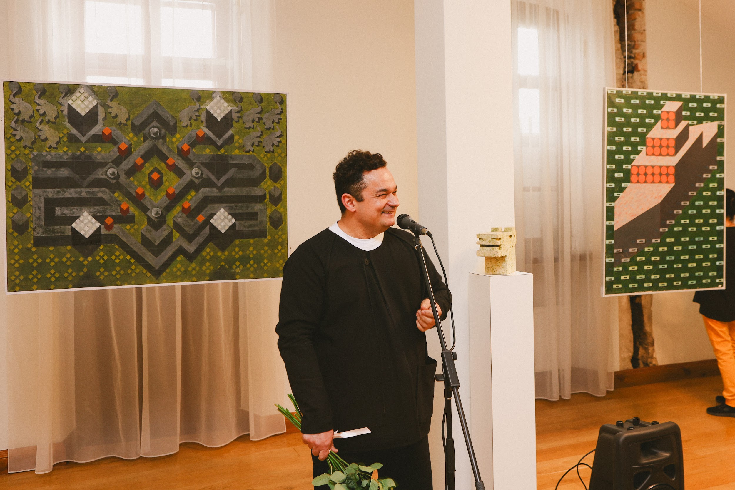 «Це людина з поглядом 17-річного юнака, з планами фундаменталіста. Він абсолютно адекватно поставився до сучасних будівельних матеріалів і до того, як їх можна імплементувати в скульптуру. Неподалік ви можете подивитися на масштабування фігури, яка і стала символом сьогоднішньої виставки», — сказав CEO BUDZIRKA Святослав Шилін під час відкриття події.