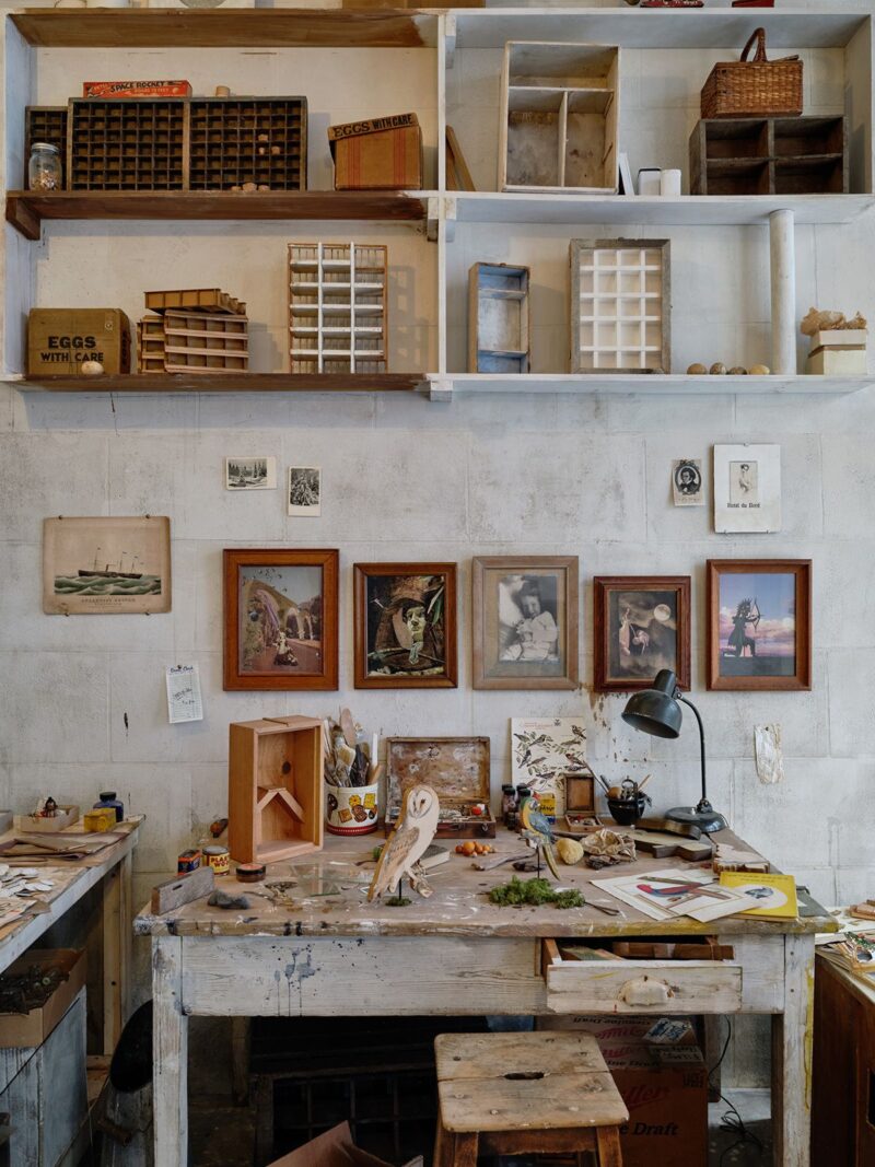 Майстерня Джозефа Корнелла в підвалі родинного будинку в Квінзі, Нью-Йорк, 1971 рік. Фото: Harry Roseman