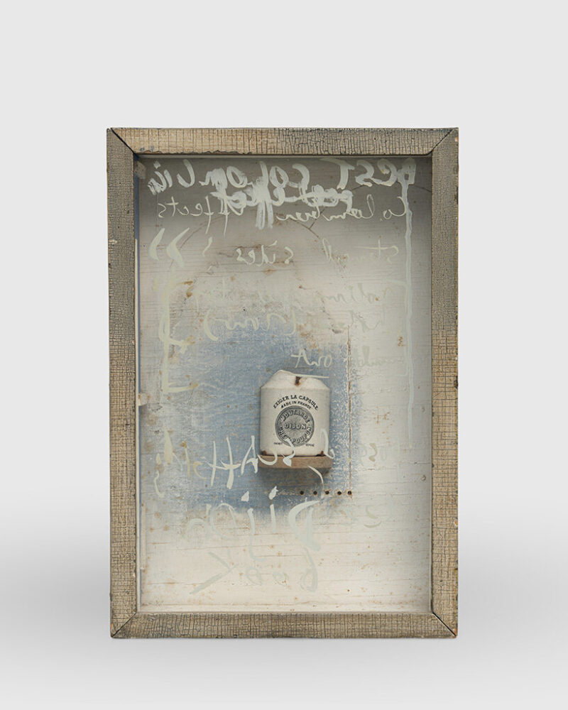 Полиці з вибіленими коробками, бляшанками та шухлядами наповнені понад 300 об’єктами з особистої колекції Корнелла: гравюрами, пір’ям, мармуровими кульками, мапами, іграшками, мушлями та паперовими фрагментами — тим, що сам художник називав своїм «відділом запасних частин». Саме з цих дрібних знахідок народжувався його унікальний візуальний всесвіт.