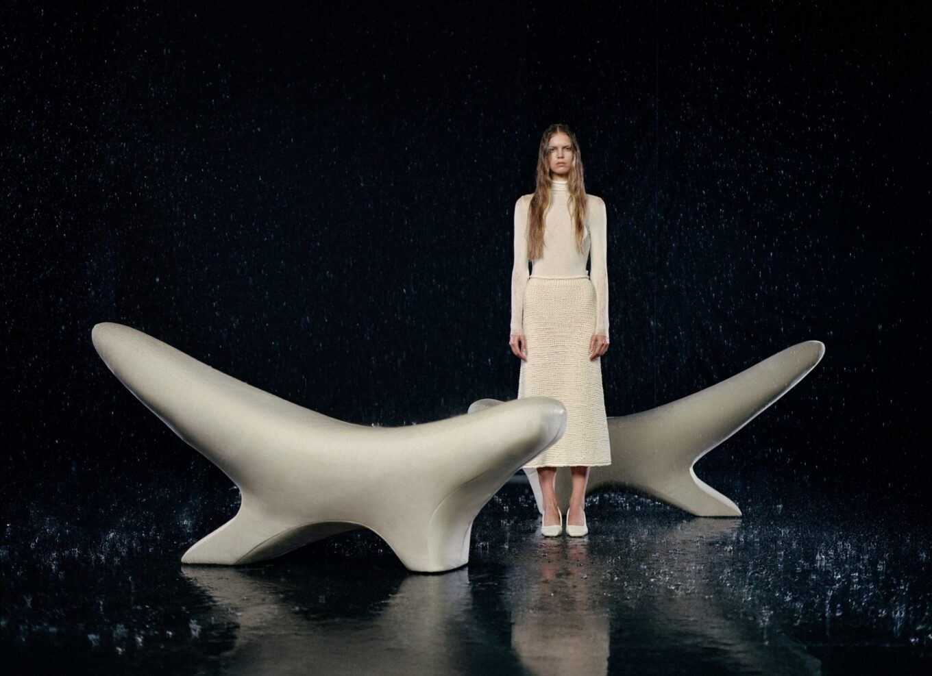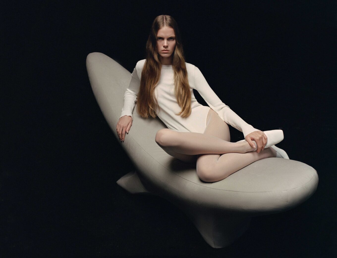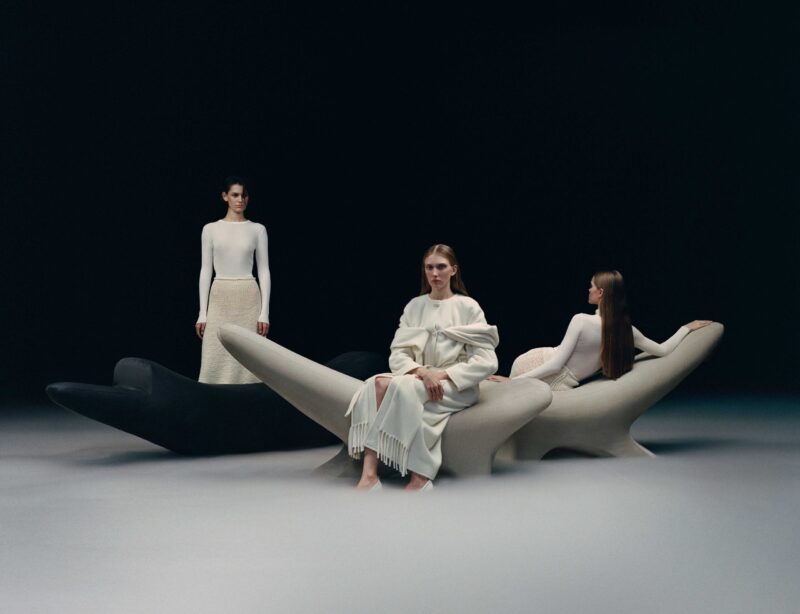 До колекції входять: диван, кушетка та кушетка-гойдалка. Ці об’єкти буквально балансують у просторі, поєднуючи скульптурну присутність із відчуттям абсолютного розслаблення.