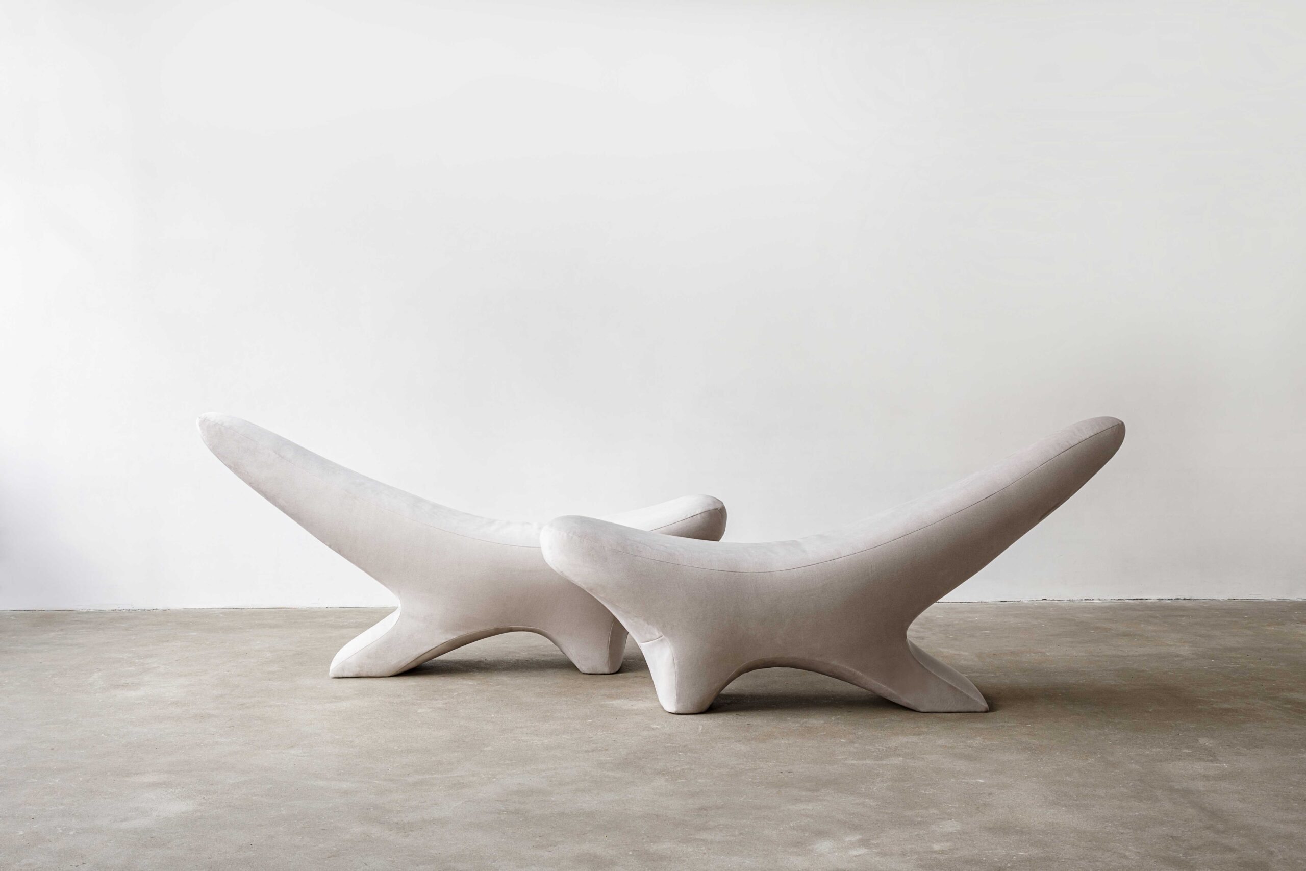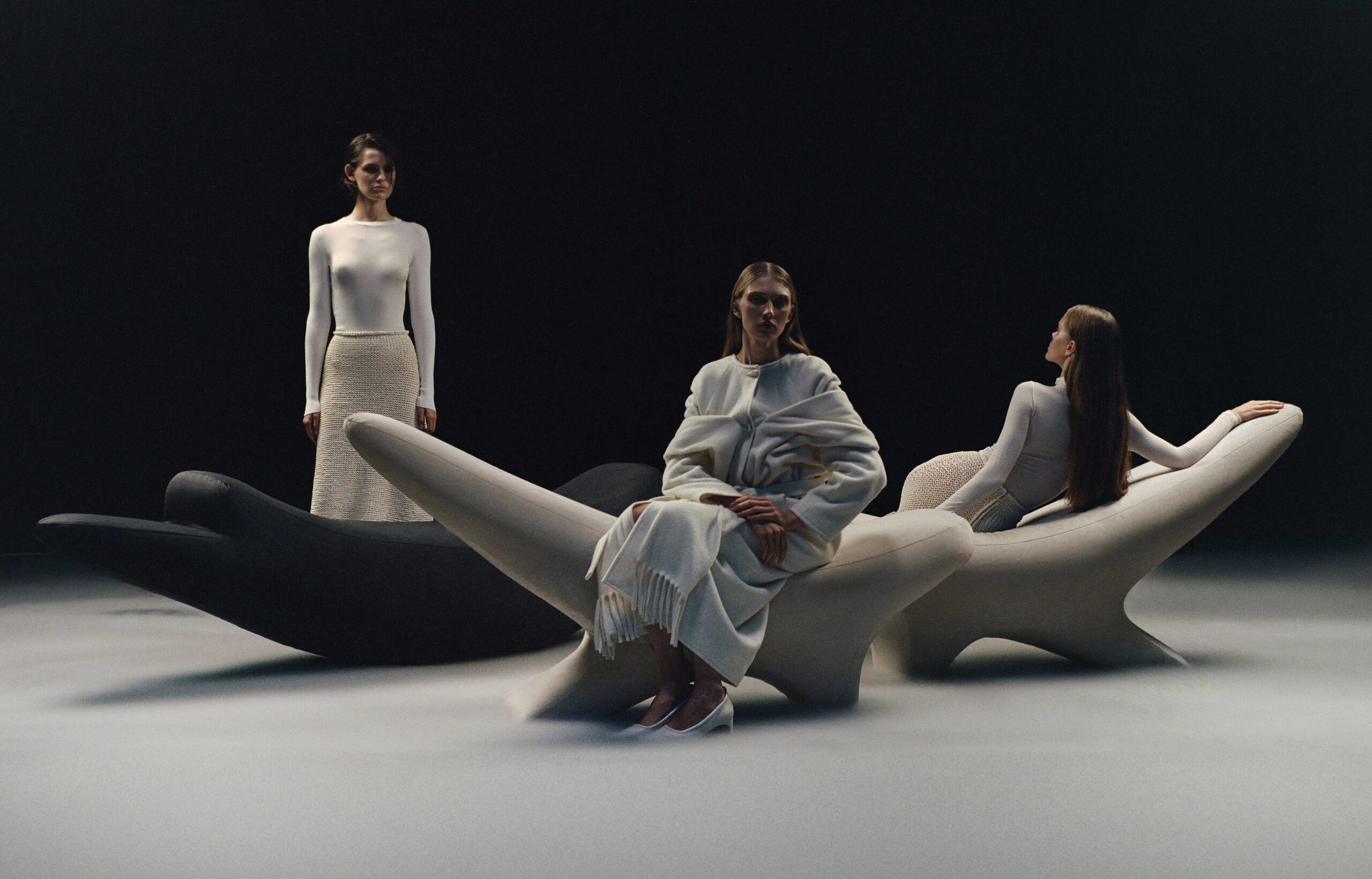 До колекції входять: диван, кушетка та кушетка-гойдалка. Ці об’єкти буквально балансують у просторі, поєднуючи скульптурну присутність із відчуттям абсолютного розслаблення.