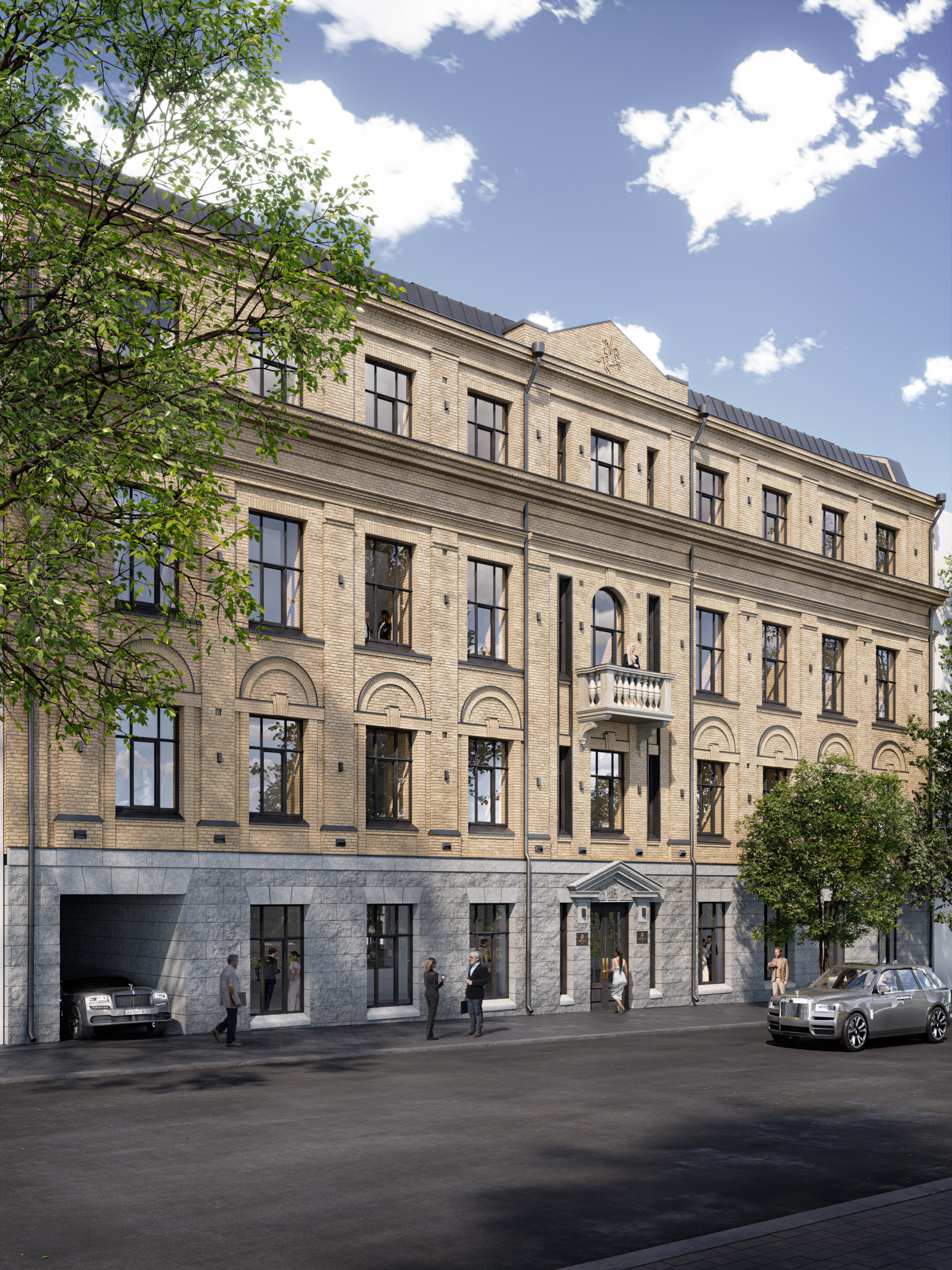 На підставі договору купівлі-продажу майновий комплекс будівель загальною площею 3690,5 кв. м, розташований за адресою: м. Київ, вул. Рейтарська, 37, складається з будинків (літ. А, А’) та флігеля (літ. Б). Останній був демонтований у 2015 році як аварійний у рамках реалізації проєкту.