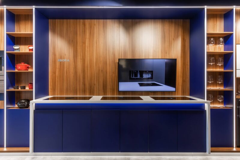 Так під час вибору техніки для своєї кухні ви зможете скомбінувати парову духову шафу V-Zug та панель для приготування з настільною витяжкою Bora, кавову машину Nivona, а холодильник Liebherr.
