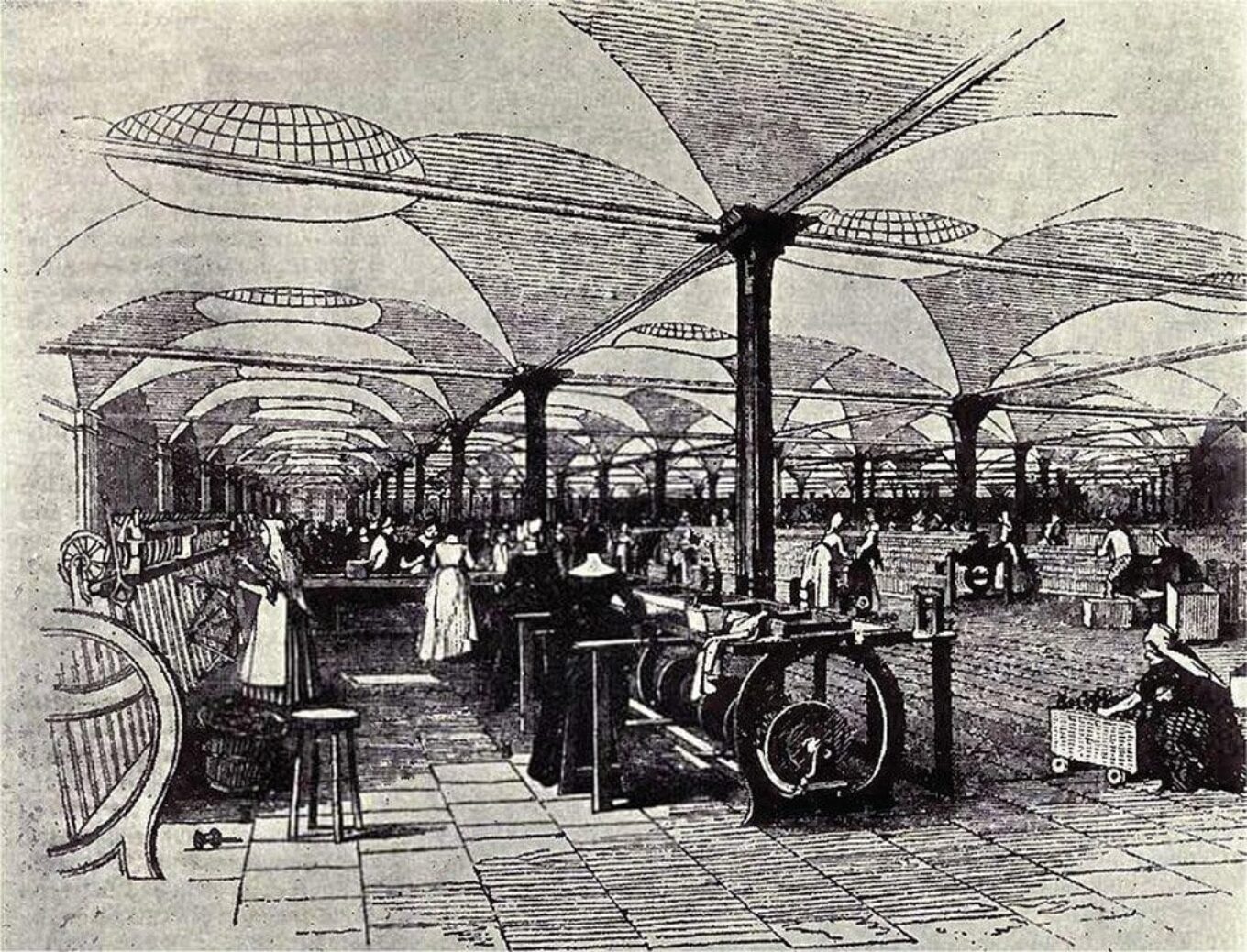 А вот работники фабрики, в основном женщины, трудились в жарких и влажных помещениях по 72 часа в неделю. Правда, поскольку Маршалл придерживался либеральных и прогрессивных взглядов, он оснастил огромный машинный зал вентиляторами, что на тот момент тоже было необычным.