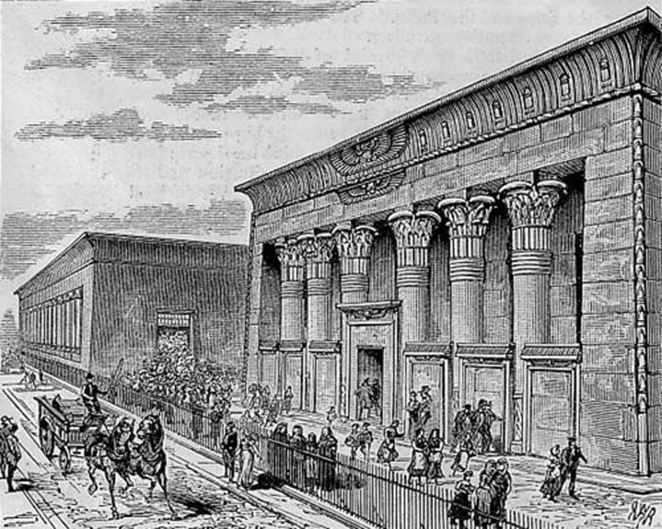 К строительству Маршалл привлек архитектора Джозефа Бономи Младшего, который в 1835 году вернулся из путешествия в Египет. Впечатленный видами храма в Эдфу, архитектор решил, спроектировать фасад фабрики в египетском стиле. Он украсил здание иероглифами и колоннами, которые венчают капители в форме цветка лотоса. Джон Маршалл сам также увлекался египтологией поэтому горячо поддержал проект.