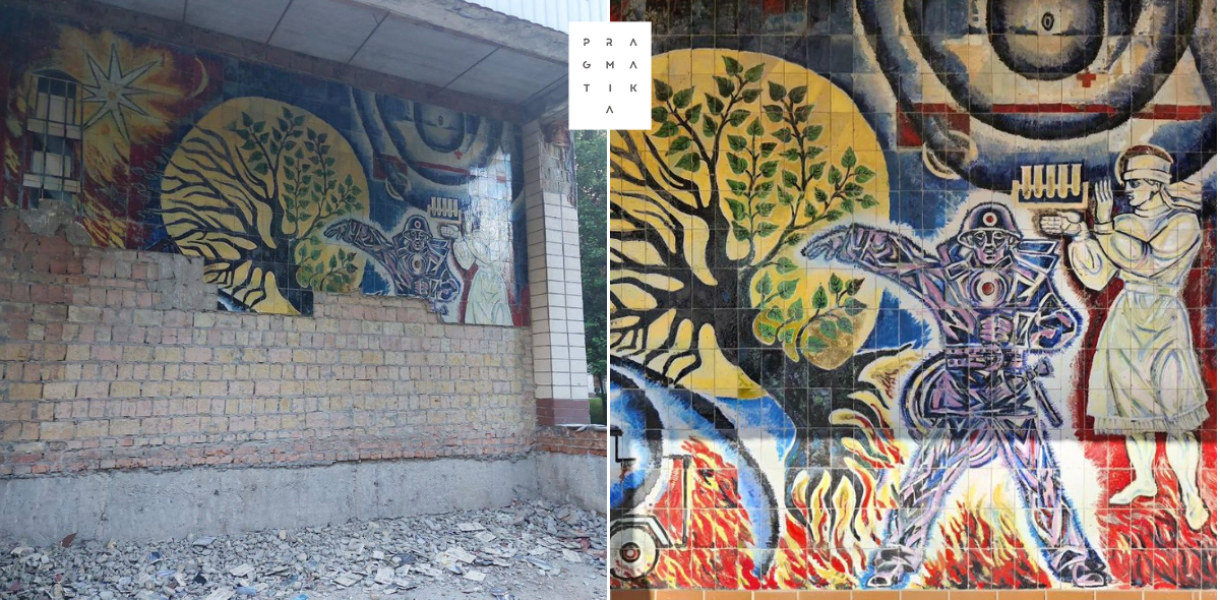 З фасаду госпіталю МВС у Києві збивають керамічне панно