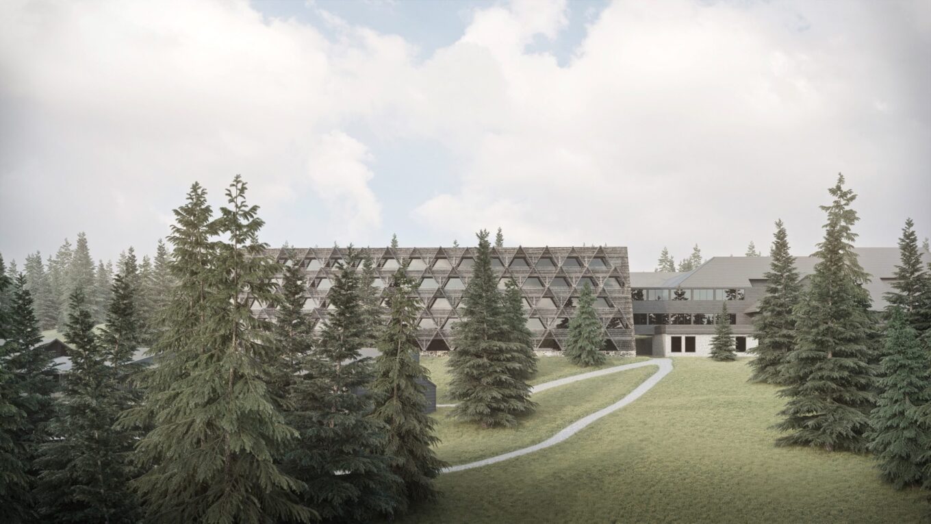 Головною метою команда архітекторів вбачала збереження форми традиційного гірського шале та його відтворення в сучасному вигляді, пише Designboom.